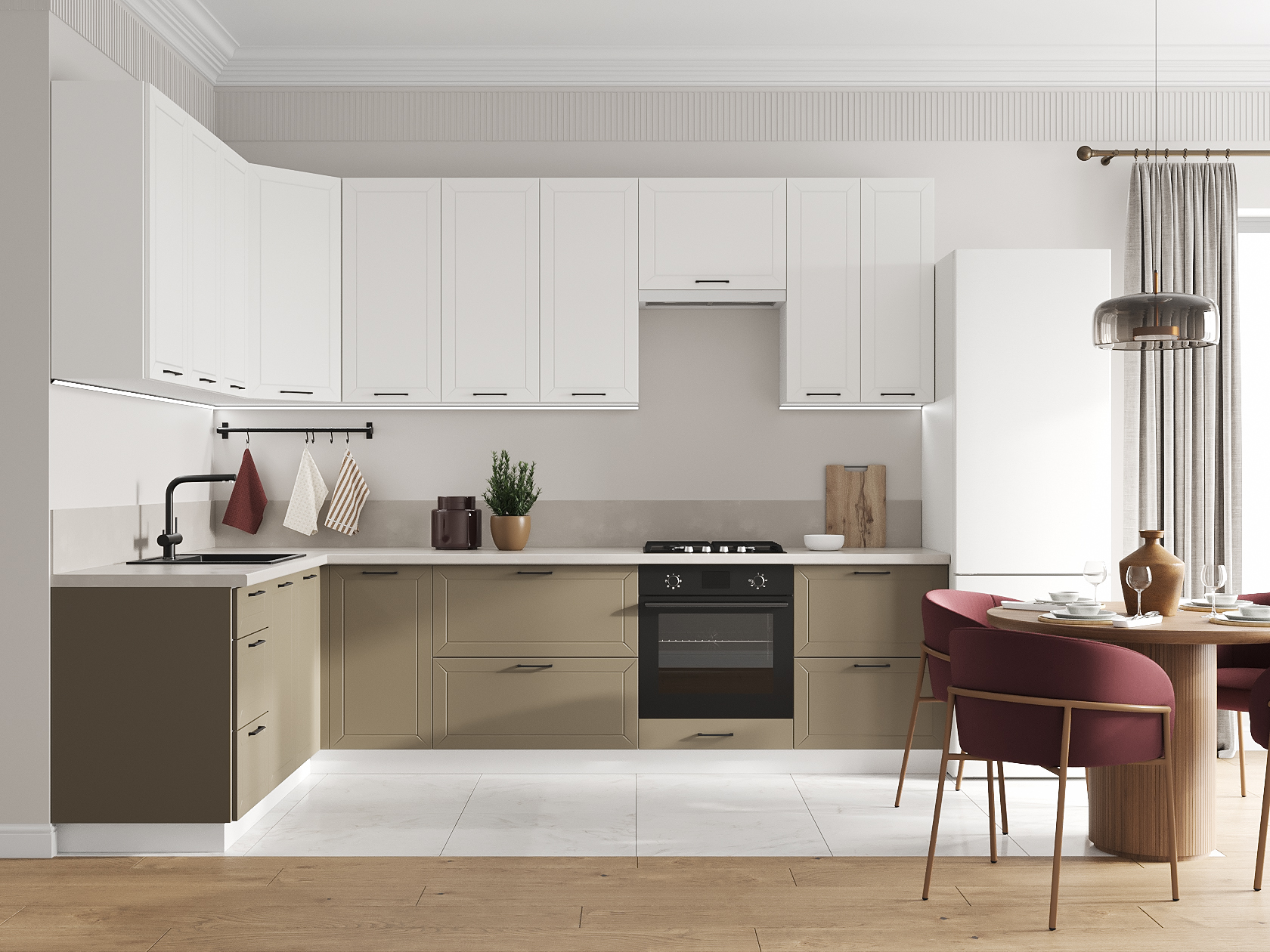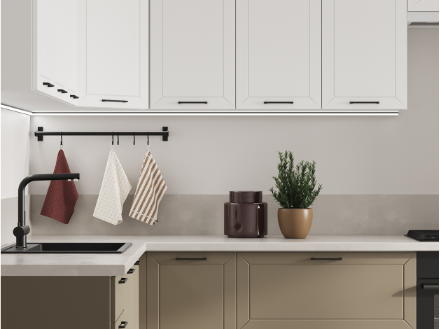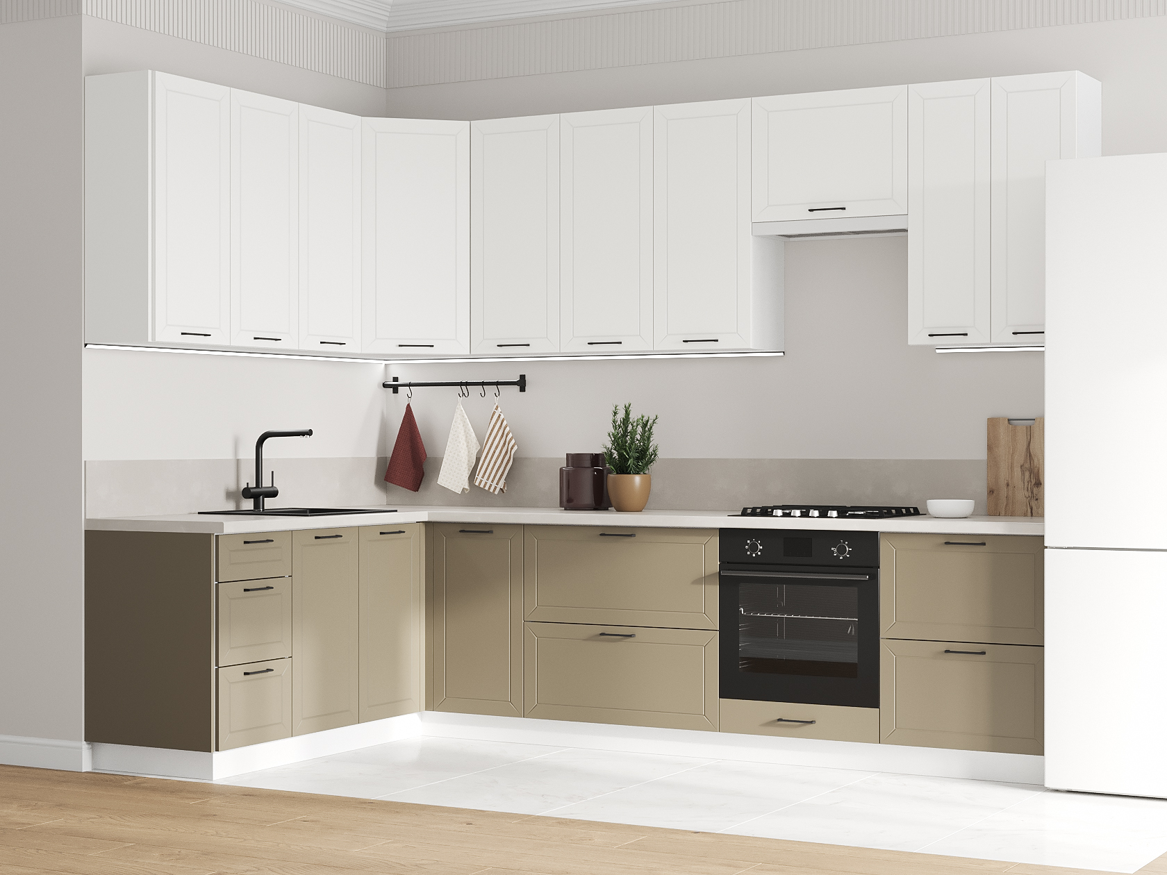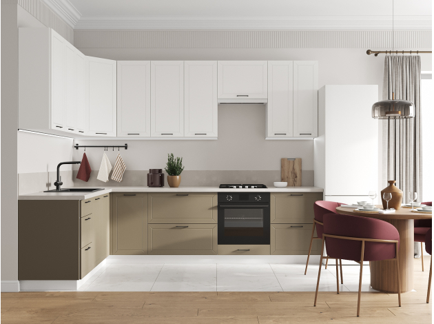 Высокий кухонный гарнитур Вектор 300х180 см Белый / Бланж / Базальт
