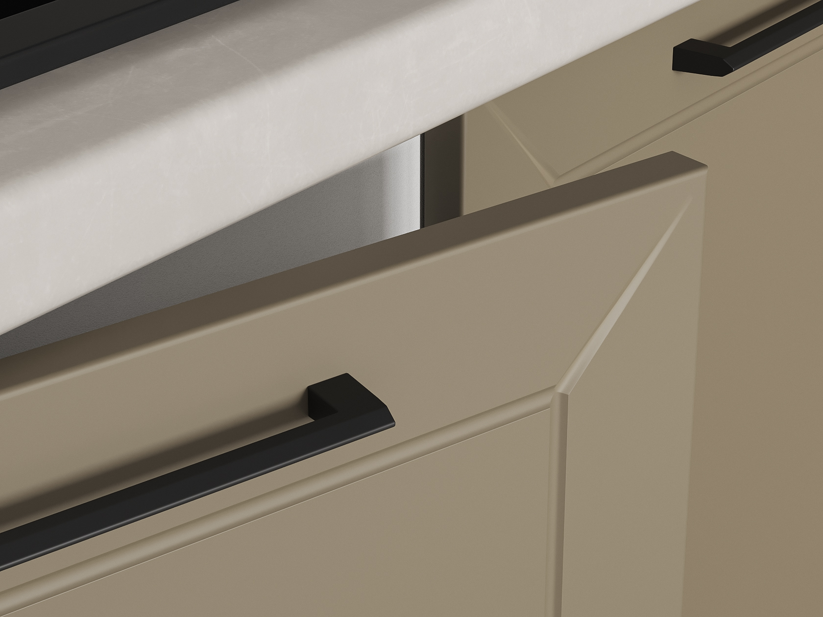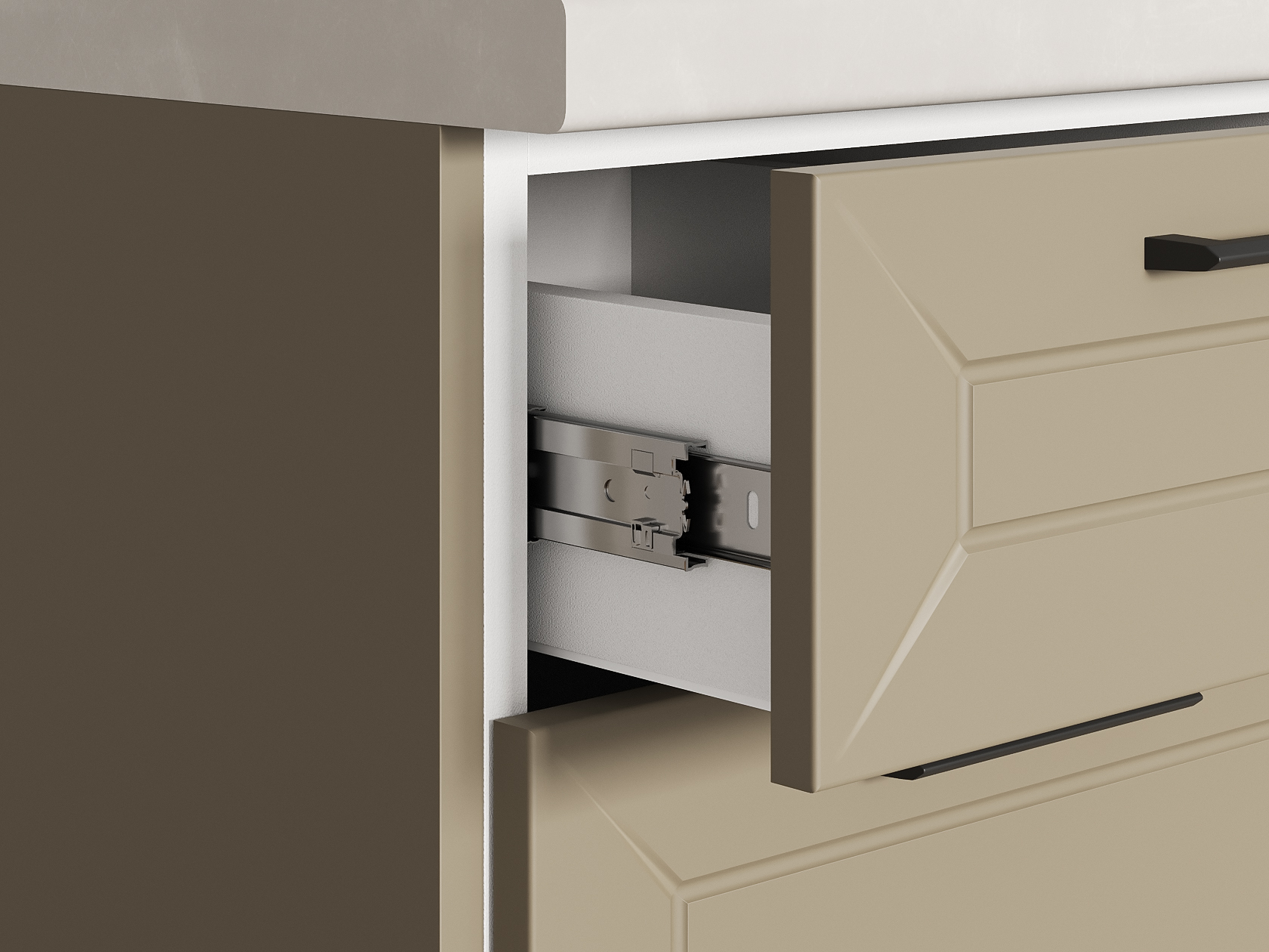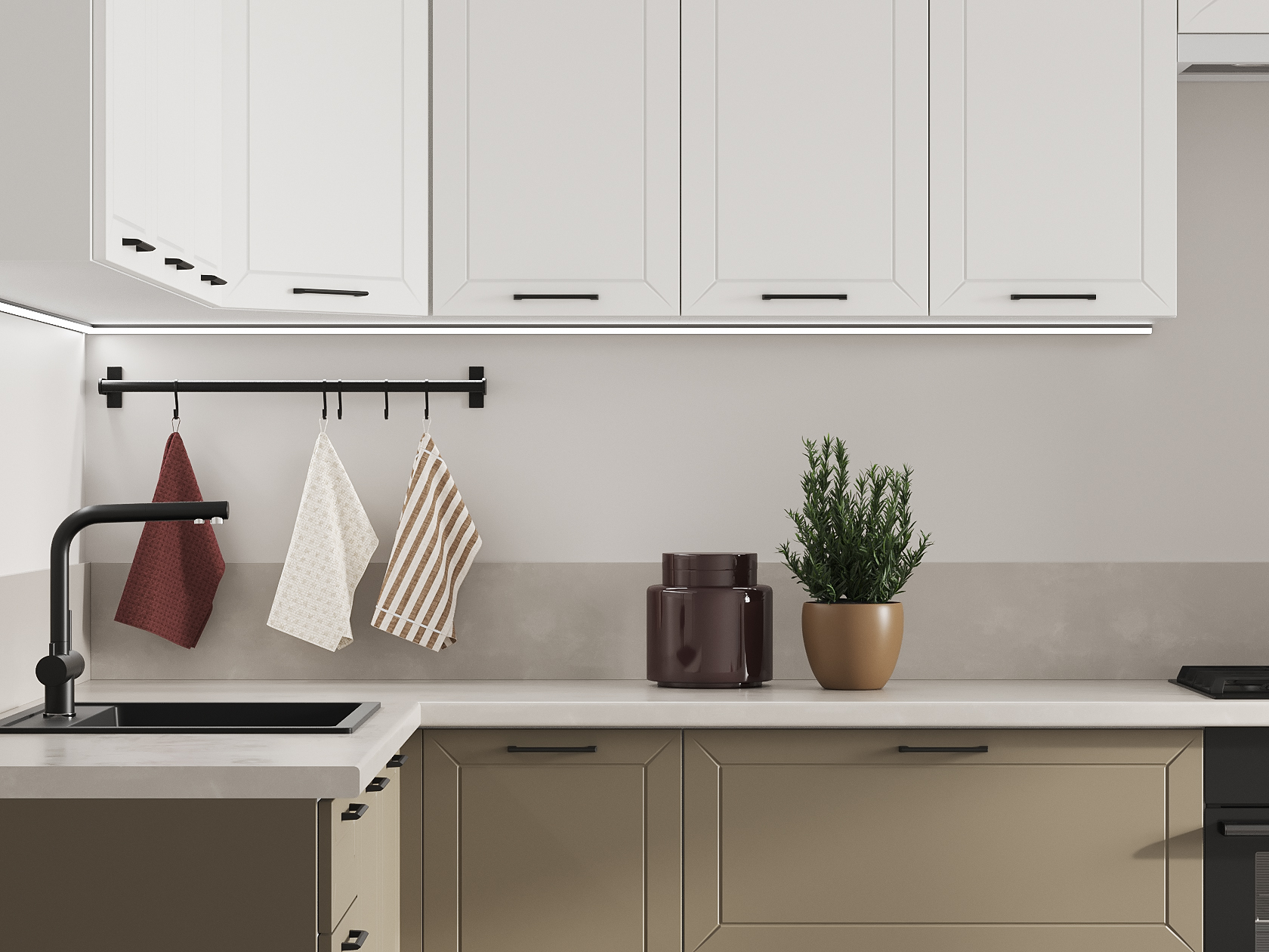 Высокий кухонный гарнитур Вектор 300х180 см Белый / Бланж / Базальт