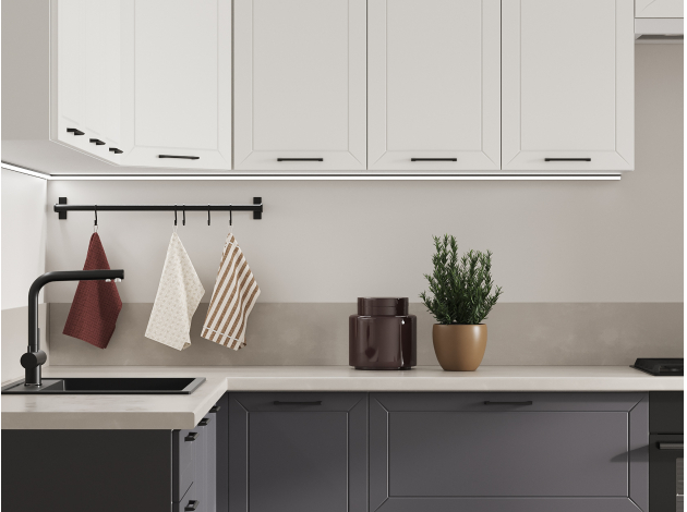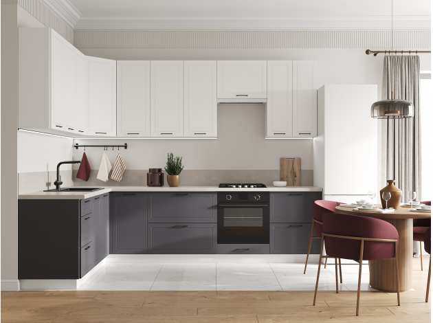 Высокий кухонный гарнитур Вектор 300х180 см Белый / Бланж / Графит