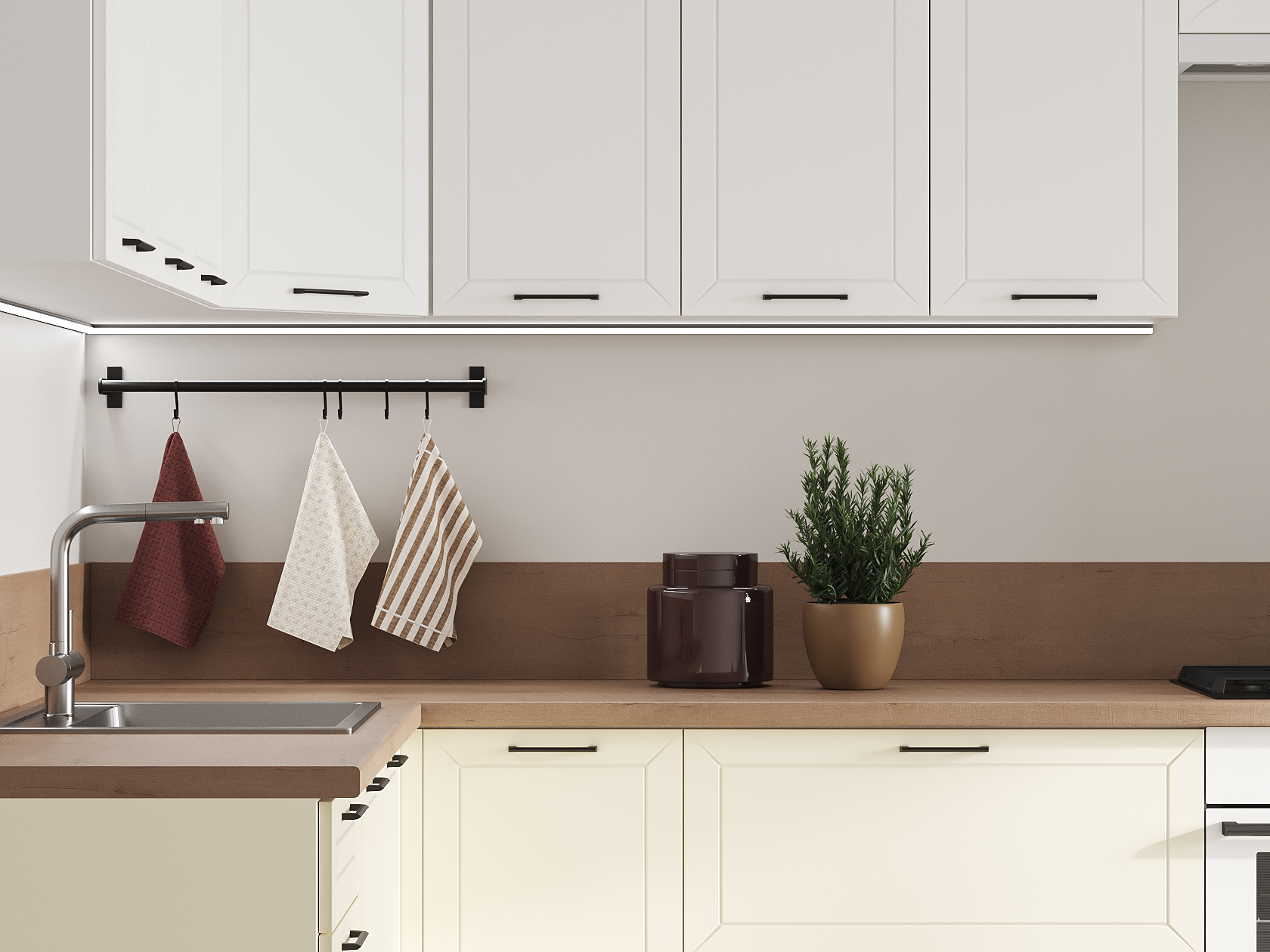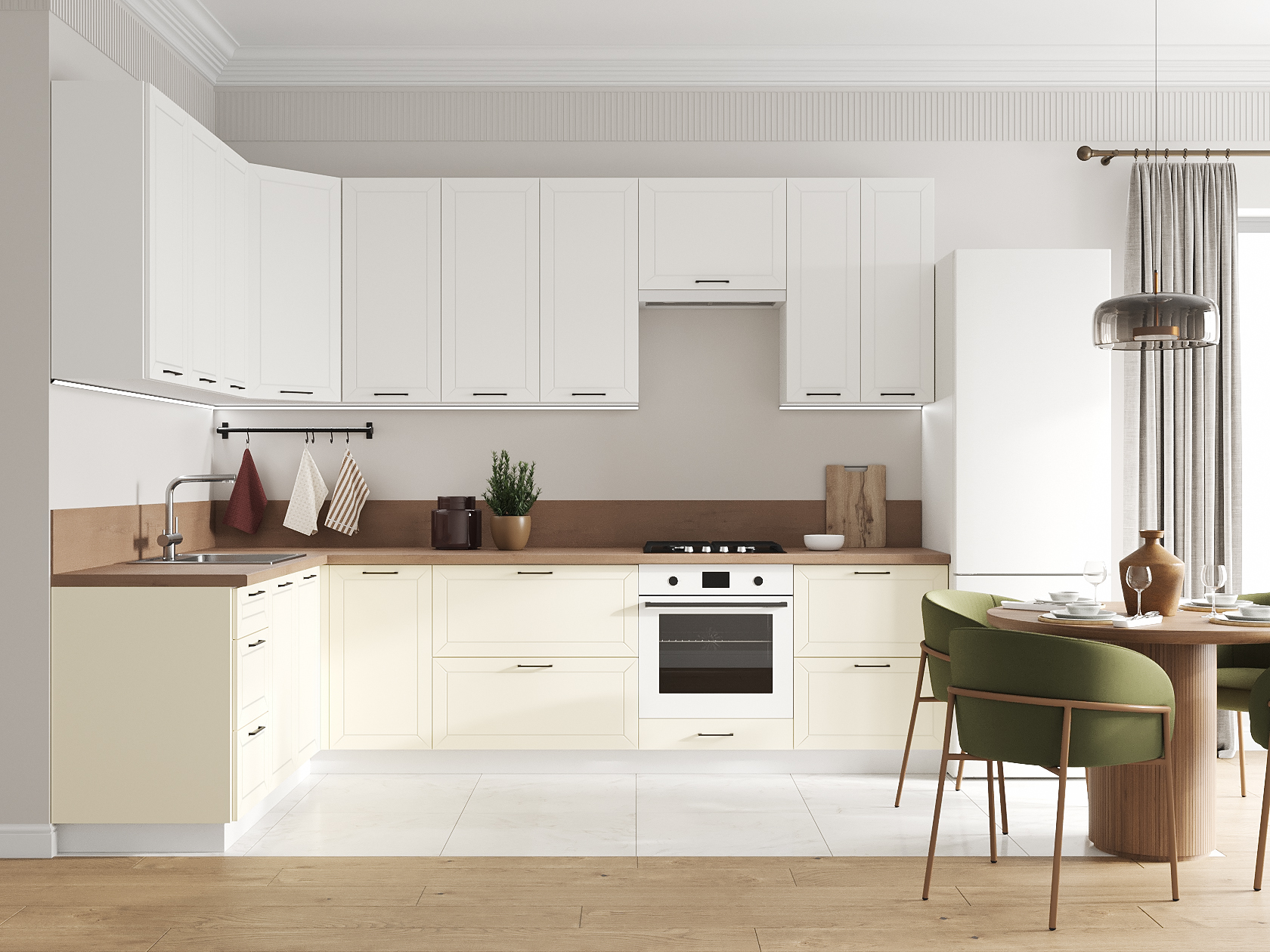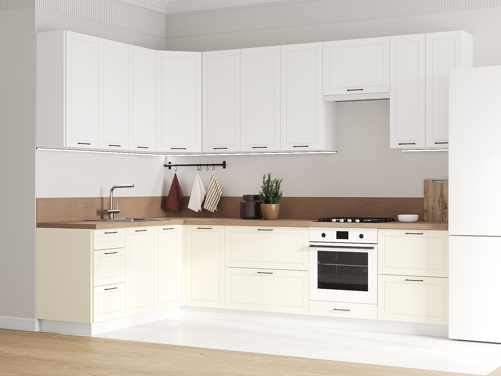Высокий кухонный гарнитур Вектор 300х180 см Белый / Бланж / Магнолия