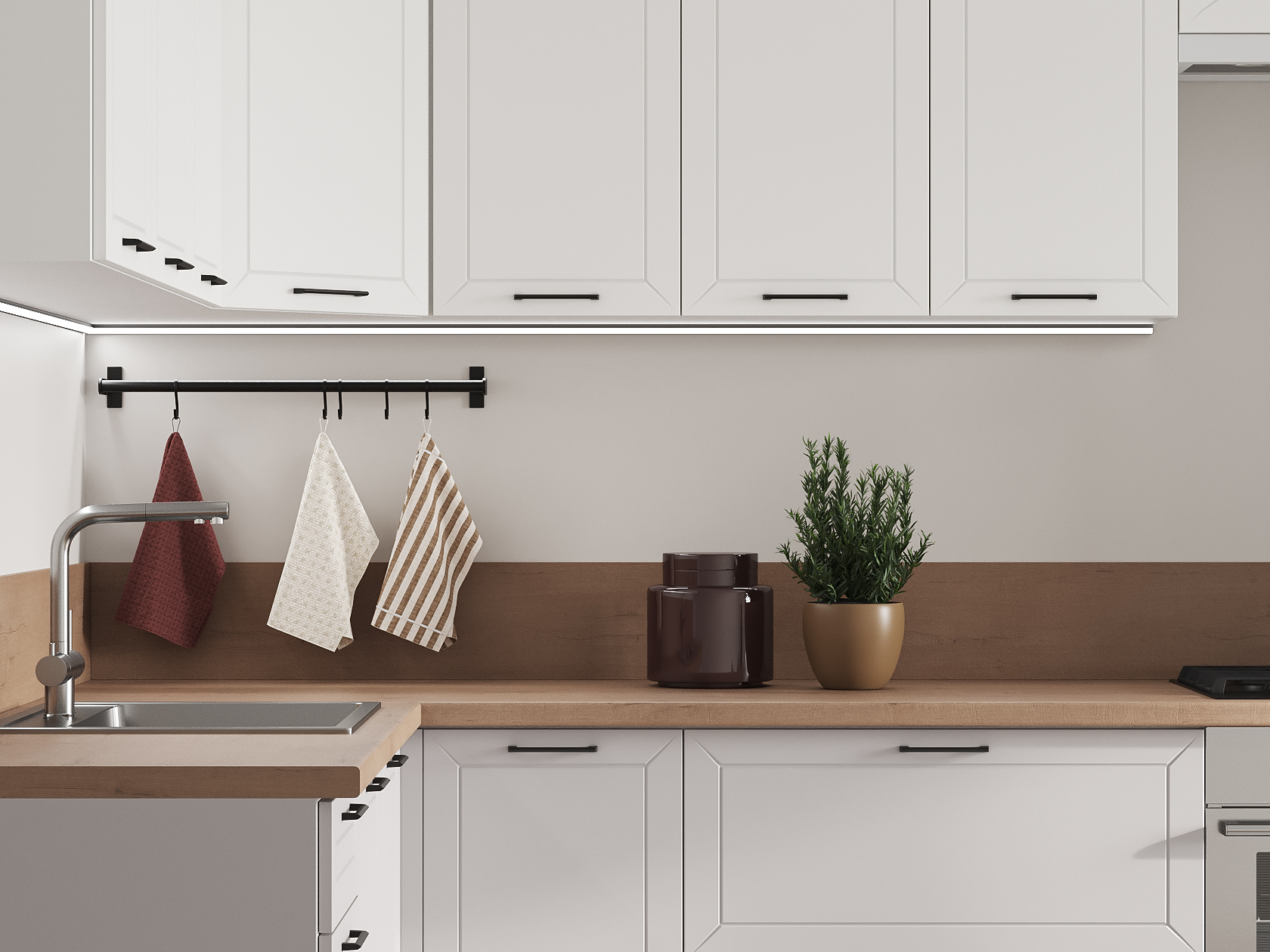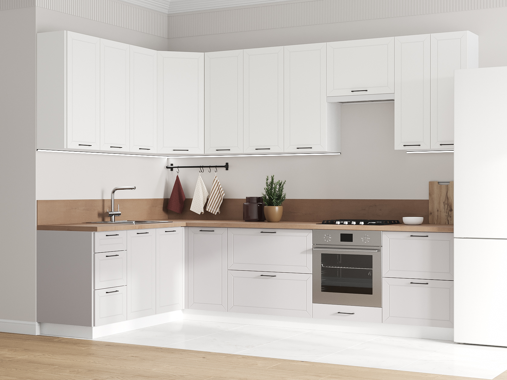 Высокий кухонный гарнитур Вектор 300х180 см Белый / Бланж / Нео