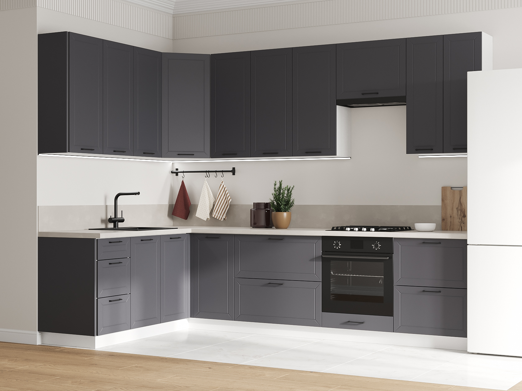 Высокий кухонный гарнитур Вектор 300х180 см Белый / Графит