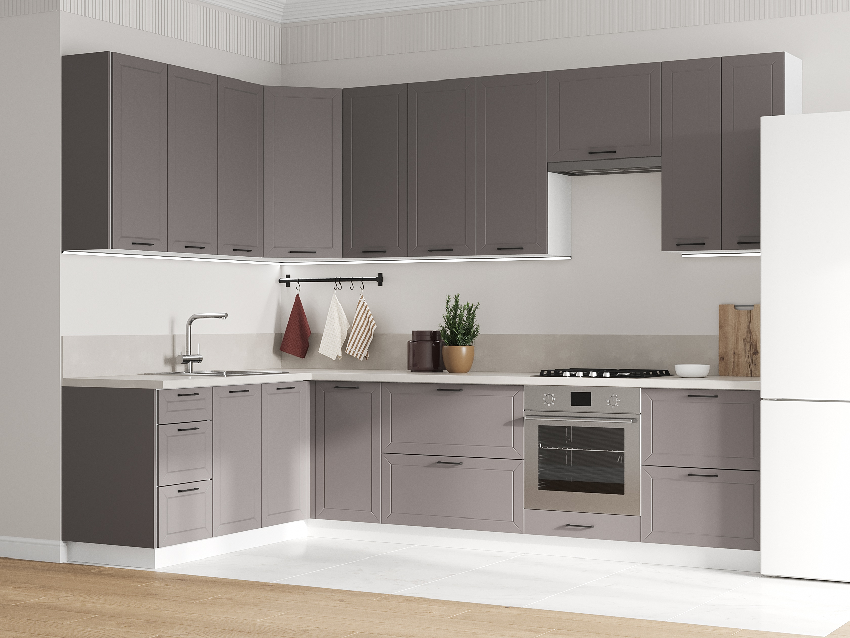Высокий кухонный гарнитур Вектор 300х180 см Белый / Грей