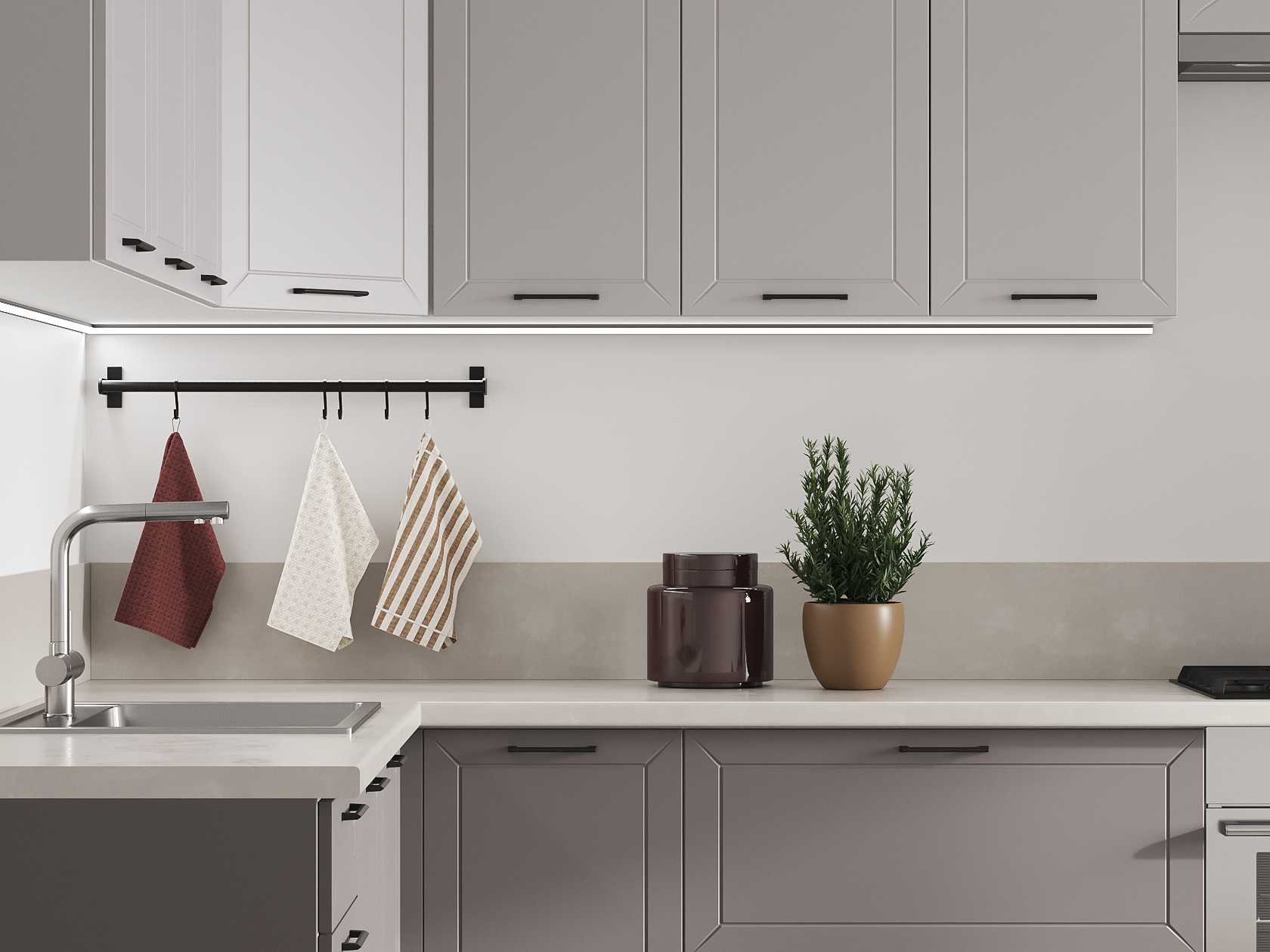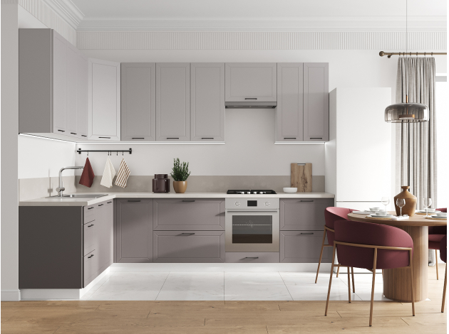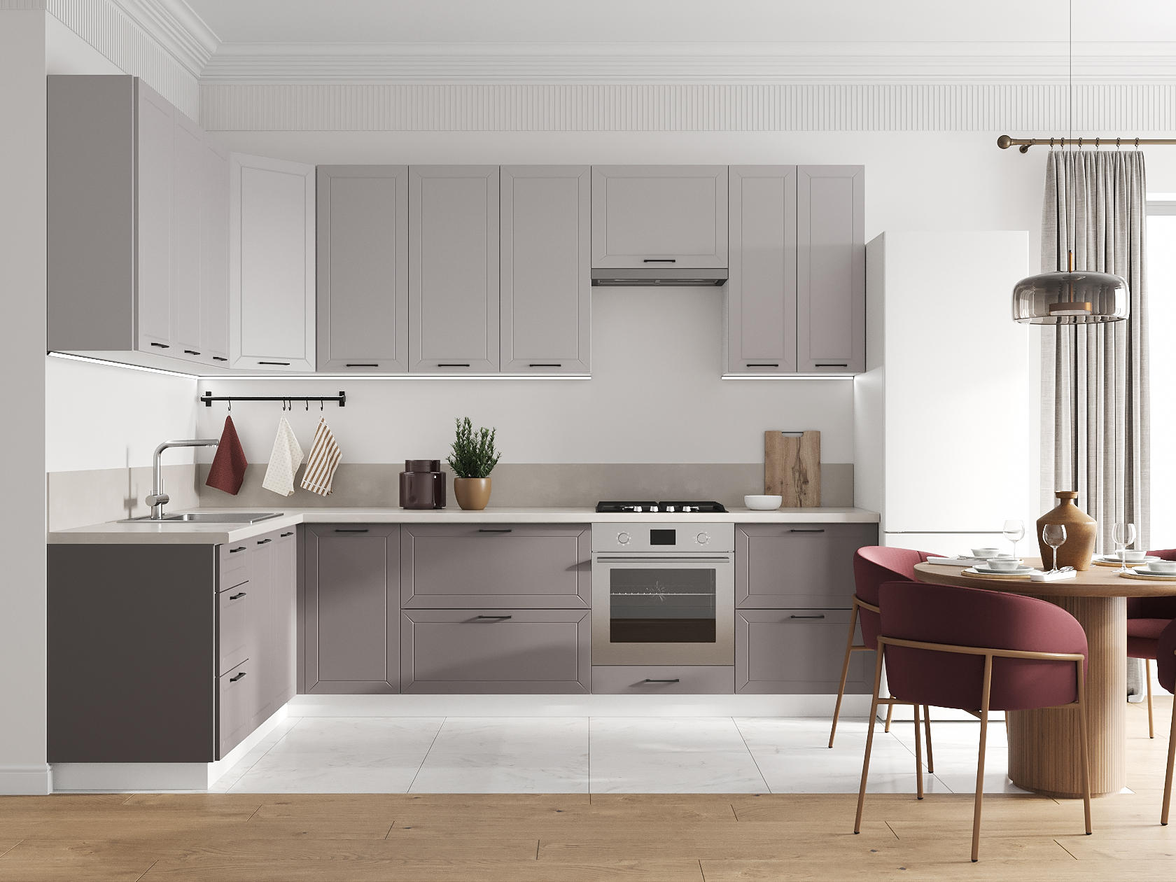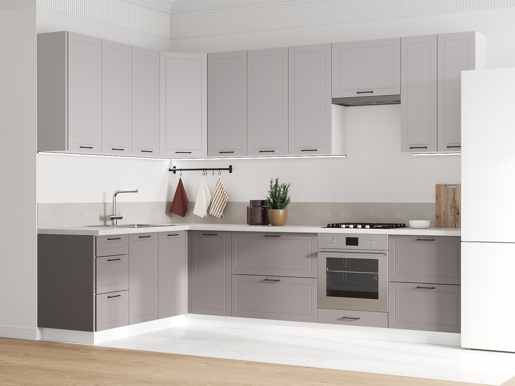 Высокий кухонный гарнитур Вектор 300х180 см Белый / Нео / Грей