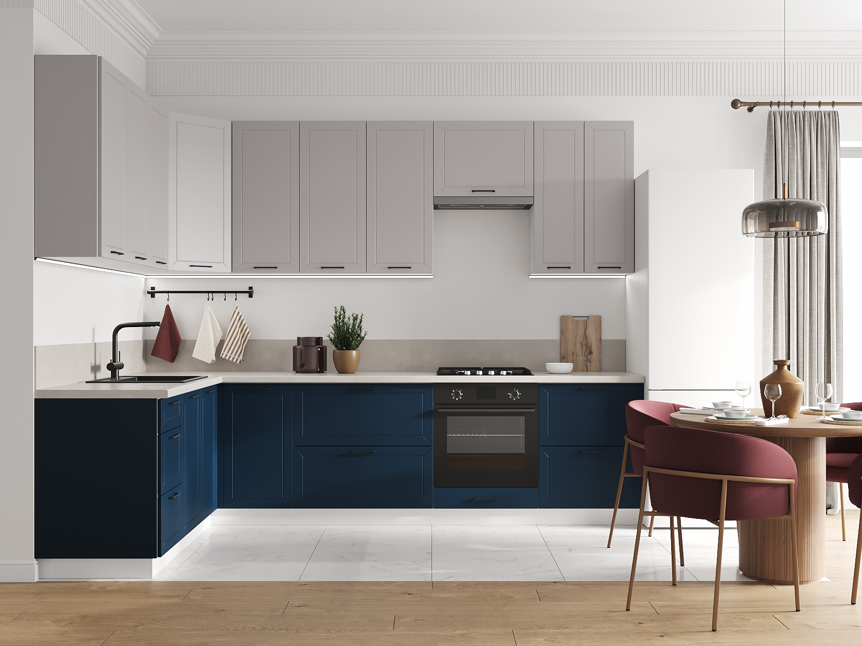 Высокий кухонный гарнитур Вектор 300х180 см Белый / Нео / Океания