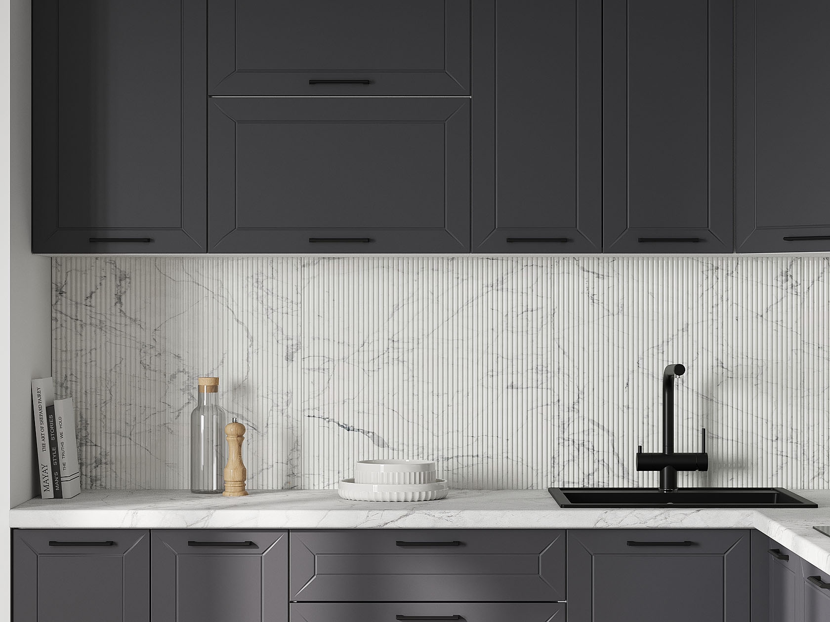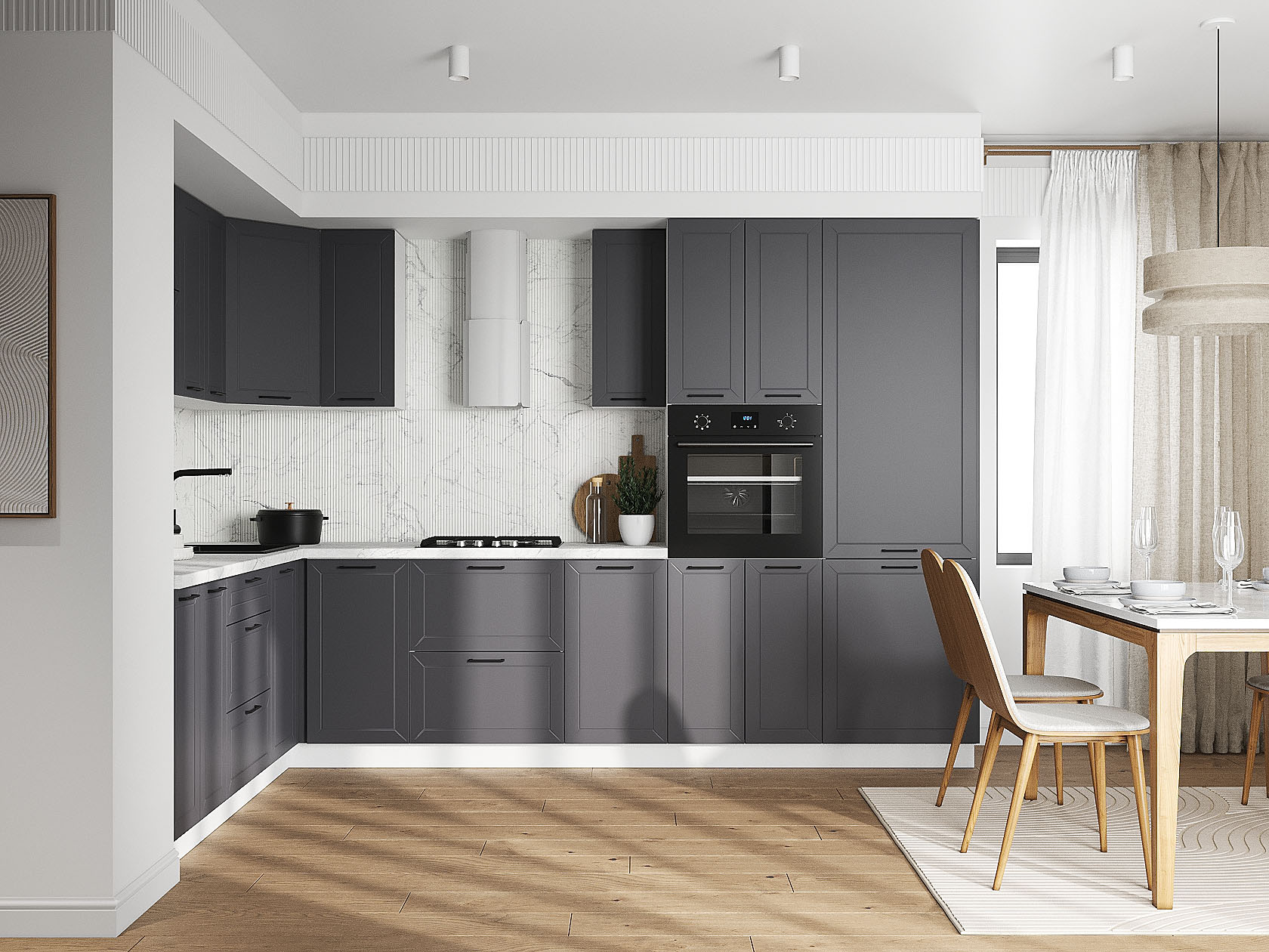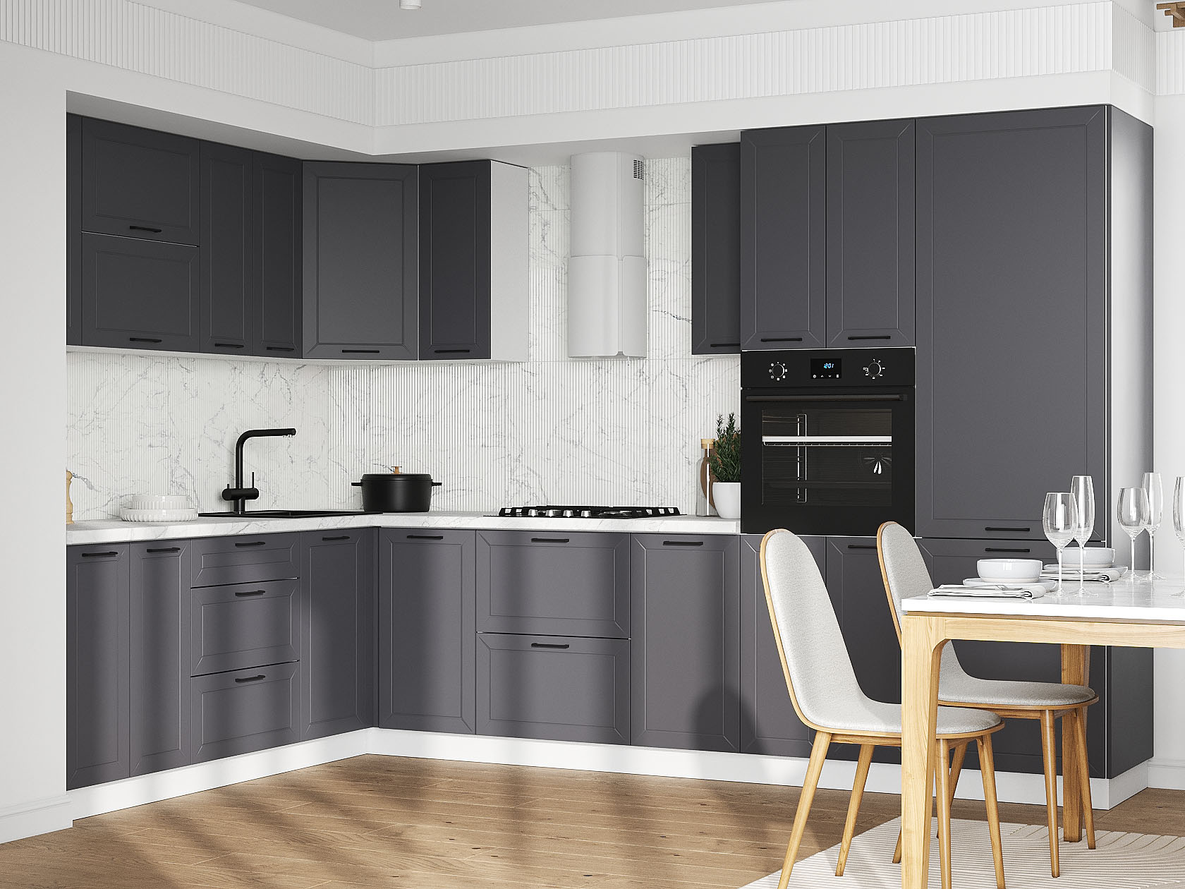 Кухонный гарнитур Вектор 320х220 см Белый / Графит