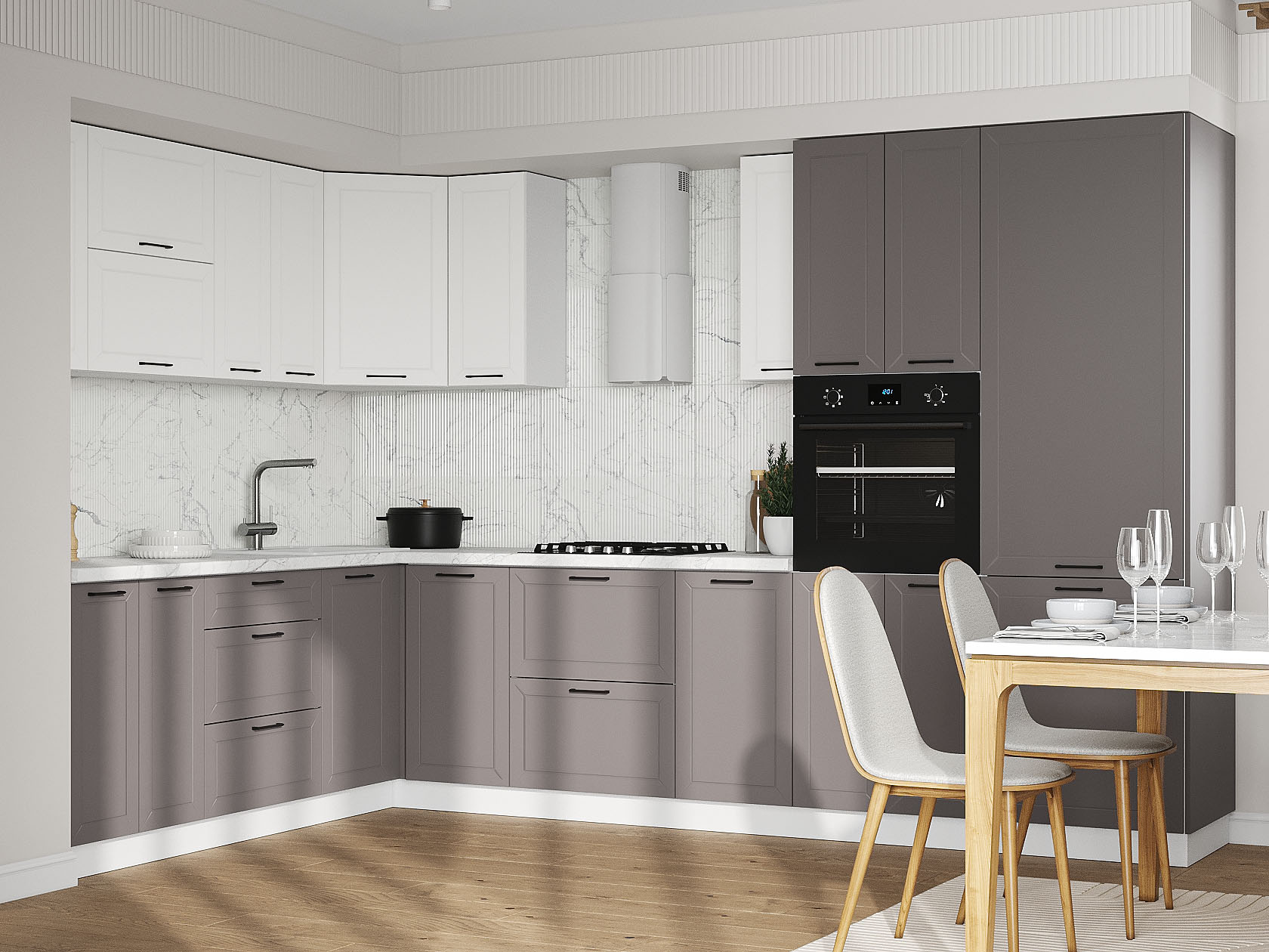 Кухонный гарнитур Вектор 320х220 см Белый / Грей / Бланж