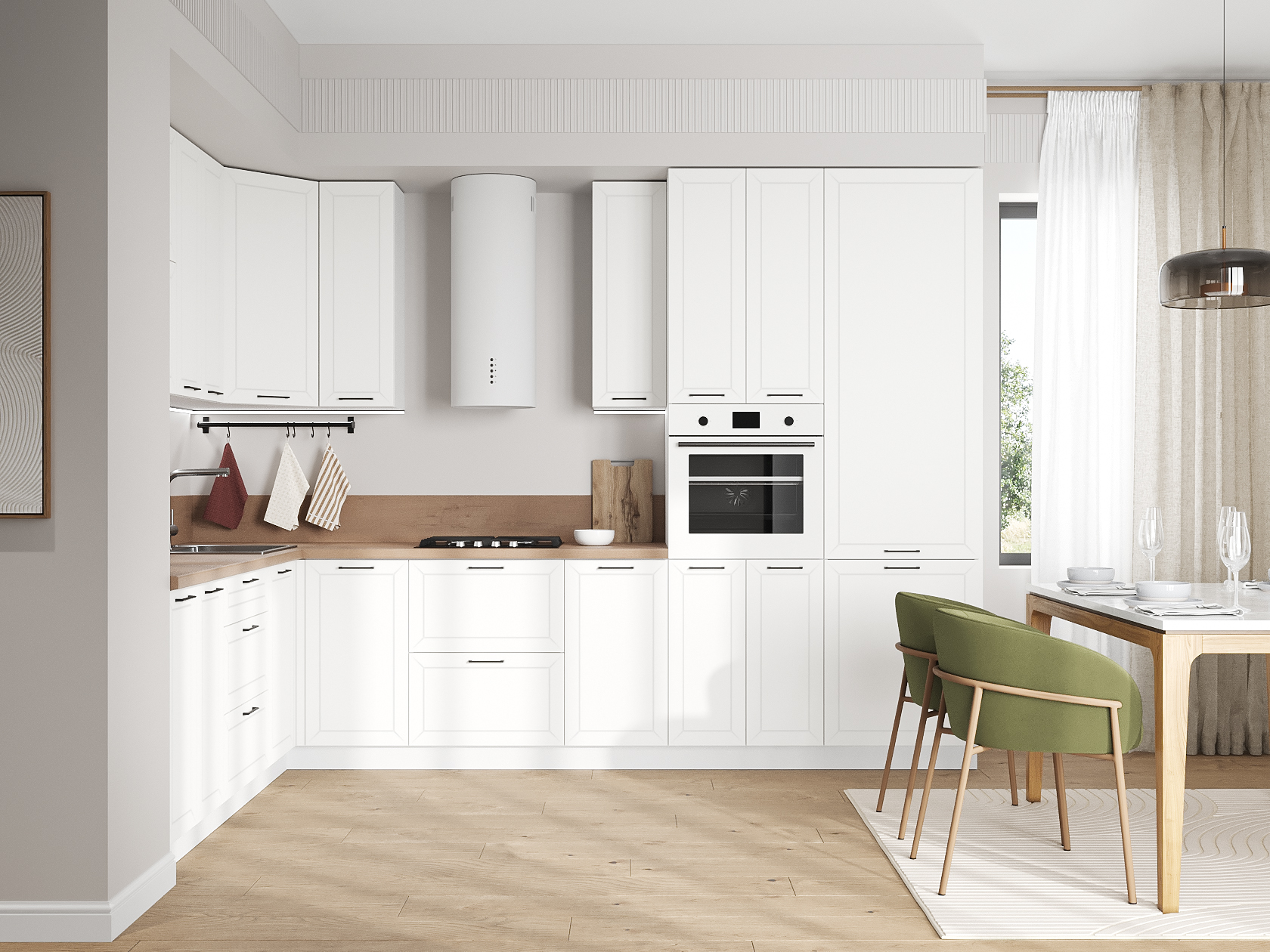 Высокий кухонный гарнитур Вектор 320х220 см Белый / Бланж