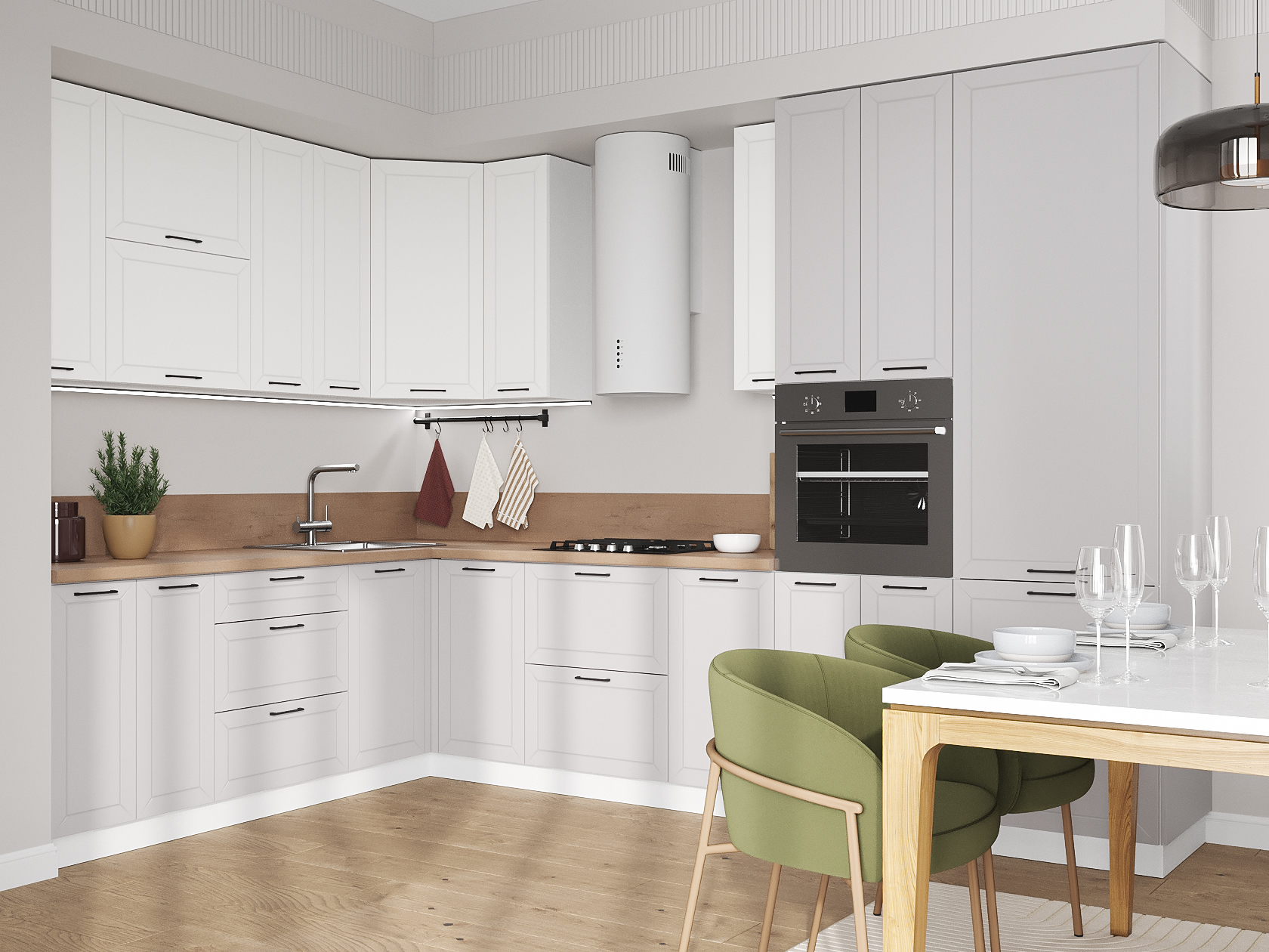 Высокий кухонный гарнитур Вектор 320х220 см Белый / Бланж / Нео