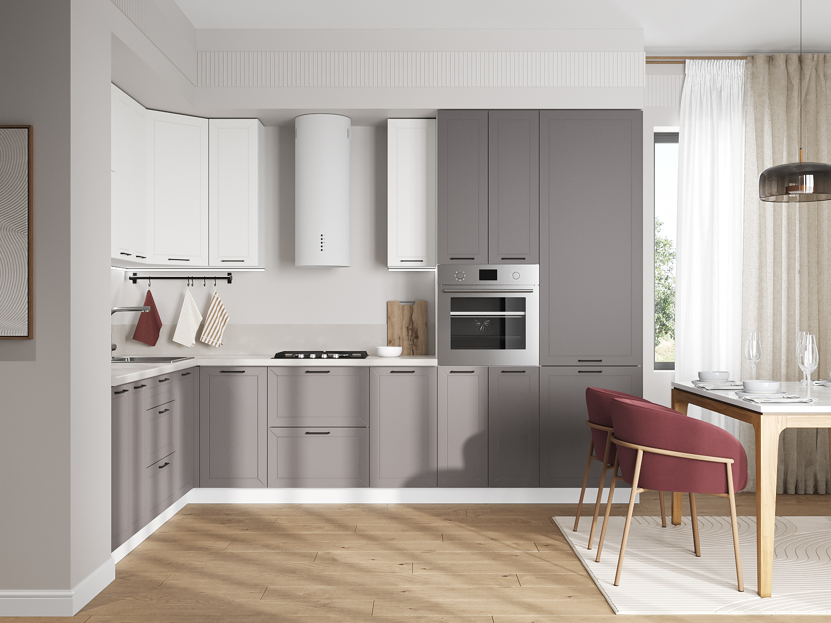 Высокий кухонный гарнитур Вектор 320х220 см Белый / Бланж / Грей
