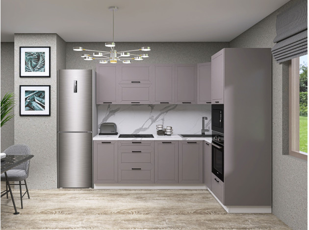 Угловой кухонный гарнитур Вектор 240х160 см — практичное приобретение на долгие годы. Расположение модулей позволяет оптимально использовать пространство кухни и соблюсти правило рабочего треугольника. Качественная фурнитура, а также простые в уходе фасады, гарантируют комфортную эксплуатацию мебели.