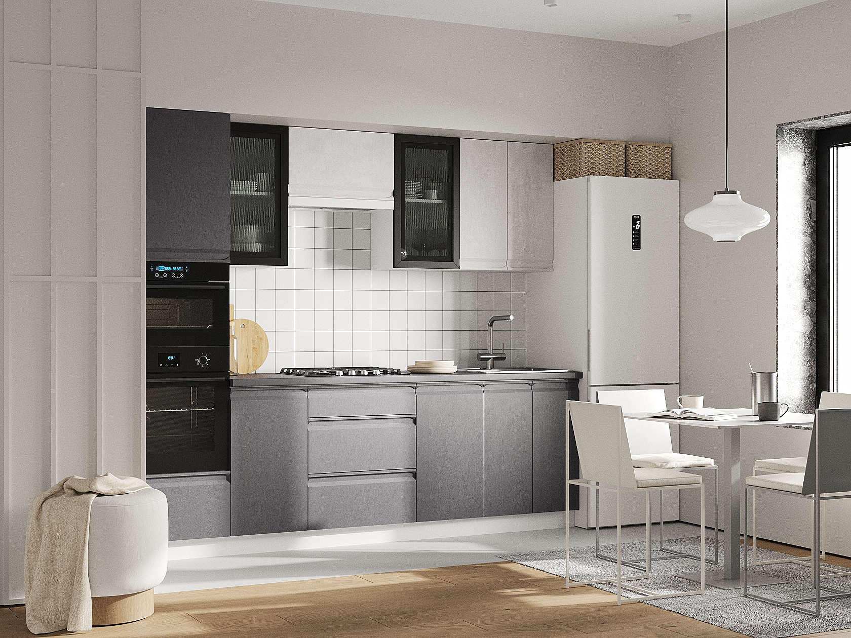 - Пенал под духовку и СВЧ: 214 х 60 х 56,2 см.