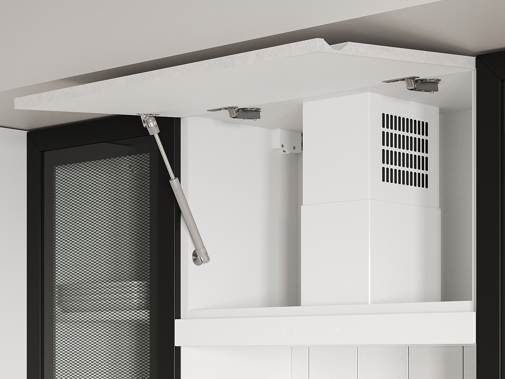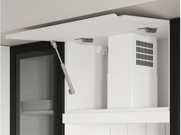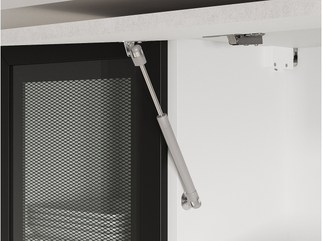 - Фурнитура дверцы антресольного шкафа: подъемник с газовым кронштейном.