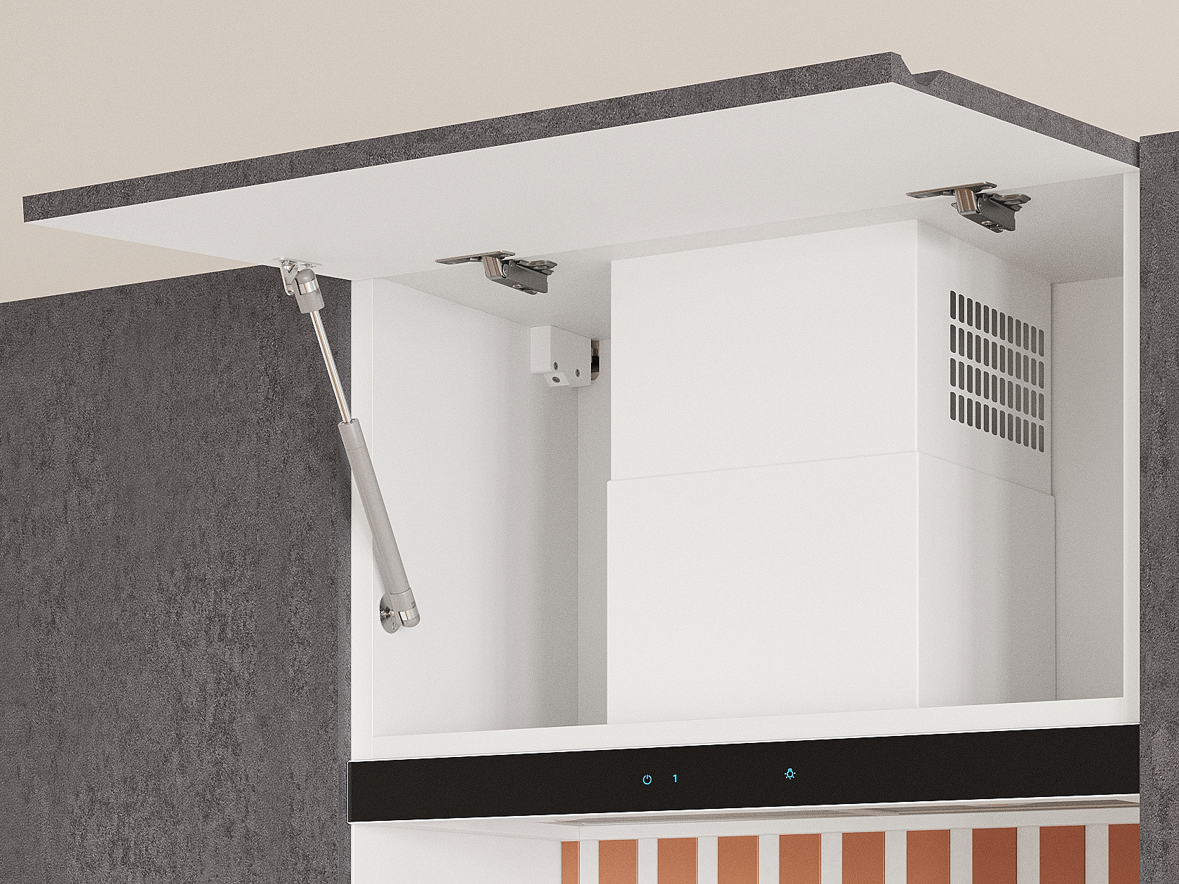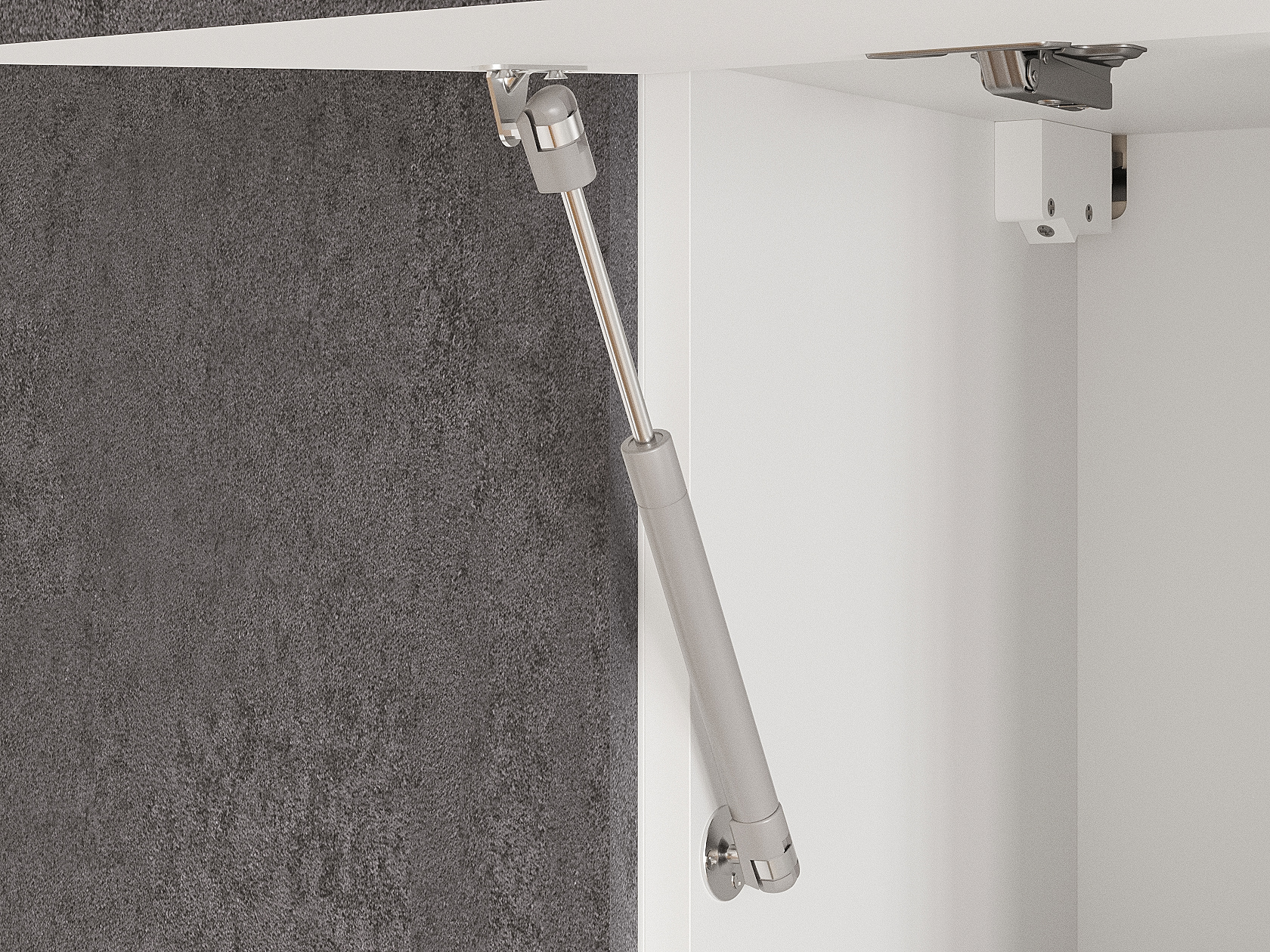 - Фурнитура дверцы антресольного шкафа: подъемник с газовым кронштейном.