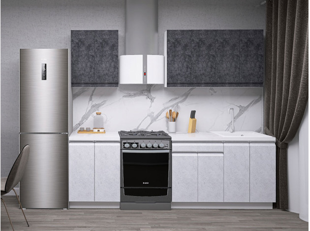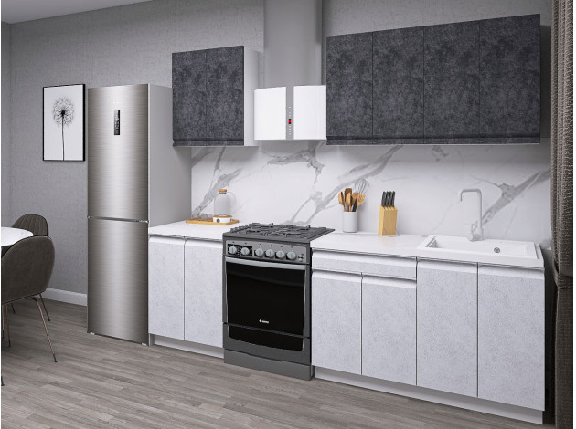 Кухонный гарнитур Вельвет 180 см Белый / Бетон графит / Бетон снежный