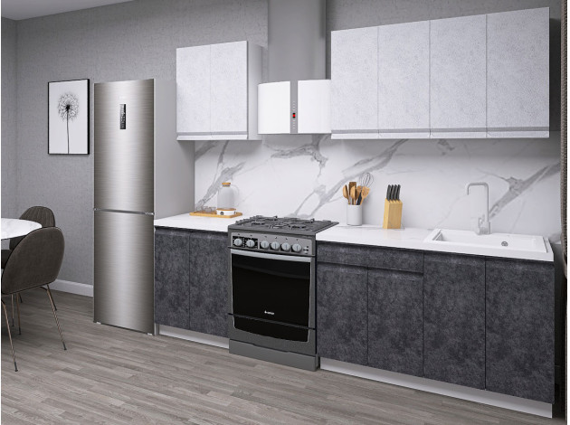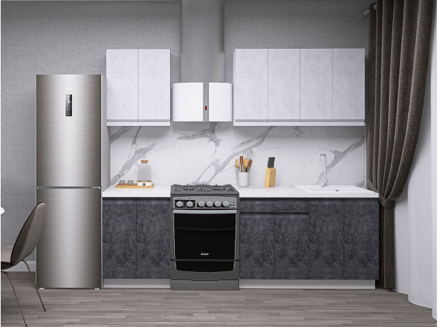 Кухонный гарнитур Вельвет 180 см Белый / Бетон снежный / Бетон графит