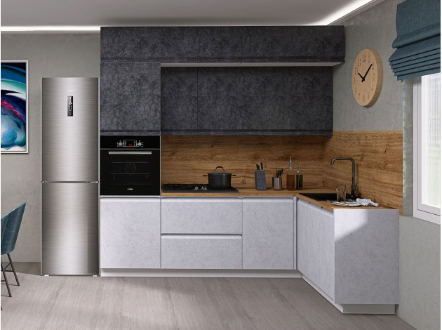 Кухонный гарнитур Вельвет 240х160 см Белый / Бетон графит / Бетон снежный