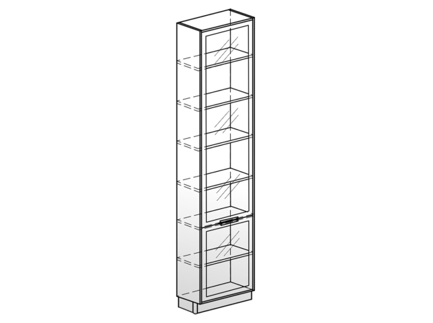 • Торцевой пенал Алюм — стильное и функциональное дополнение кухонного гарнитура. Полки позволяют удобно расположить посуду, продукты и другие принадлежности. Регулируемые опоры обеспечивают устойчивость мебели. За стеклянными фасадами легко ухаживать, убирая пыль с помощью мягкой салфетки.
