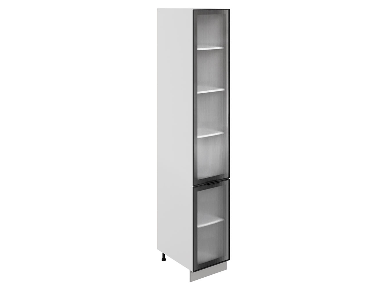 • Пенал Алюм гармонично дополнит кухонный гарнитур, разнообразив интерьер. Полки позволят удобно разместить посуду, продукты и другие принадлежности. Фасады из полупрозрачного стекла украшены элегантными рамками, что придает модулю стильный и актуальный облик.