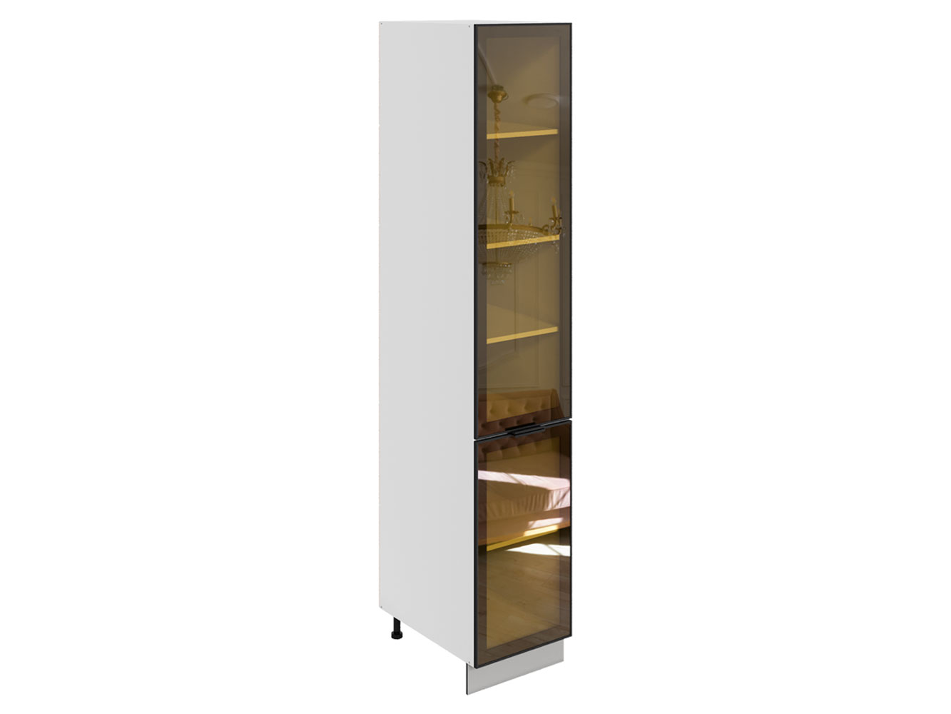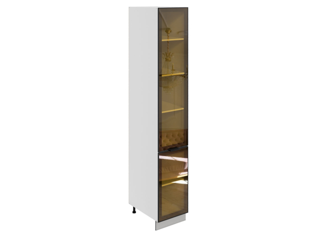 • Пенал Алюм гармонично дополнит кухонный гарнитур, разнообразив интерьер. Полки позволят удобно разместить посуду, продукты и другие принадлежности. Фасады из полупрозрачного стекла украшены элегантными рамками, что придает модулю стильный и актуальный облик.