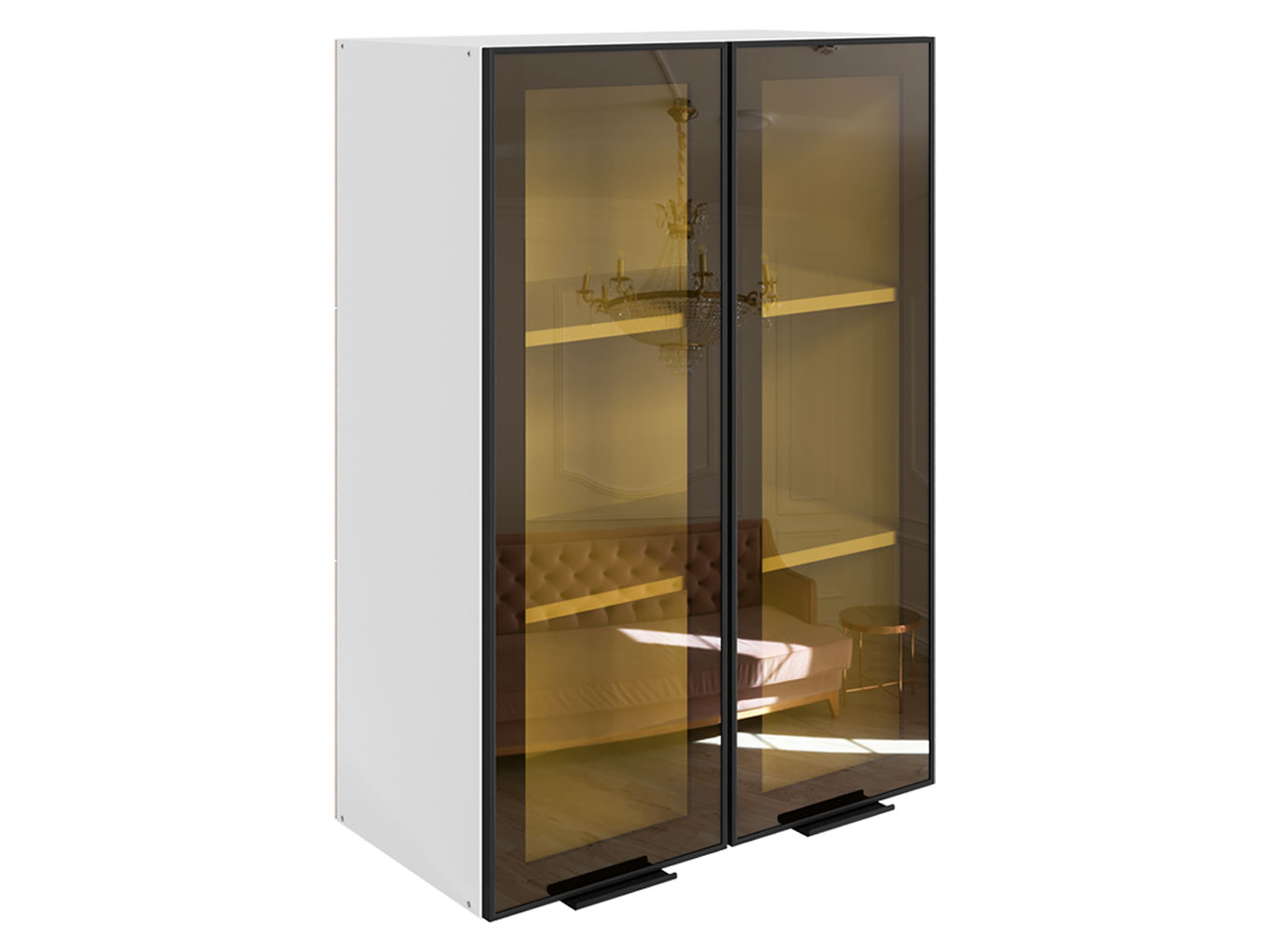 Навесной шкаф Алюм Макси Белый / Черный муар / Зеркальная бронза 60 см