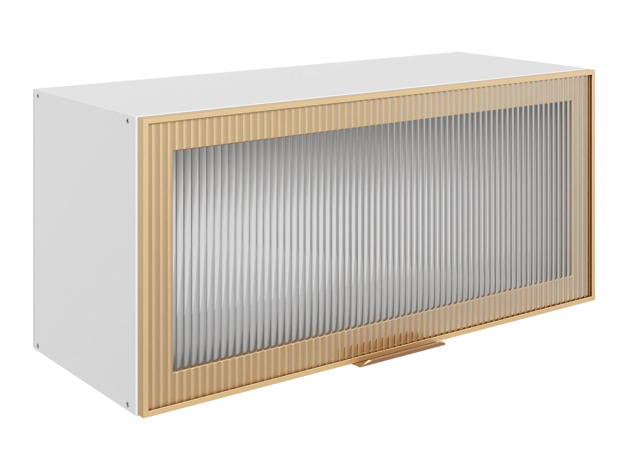 Антресольный шкаф Алюм разнообразит верхний ряд кухонного гарнитура, расширив возможности для хранения. Фасад со стеклянной вставкой придает модулю визуальную легкость, что особенно важно для небольших помещений. Откидная дверца оснащена подъемным механизмом, который надежно удерживает ее в открытом положении.