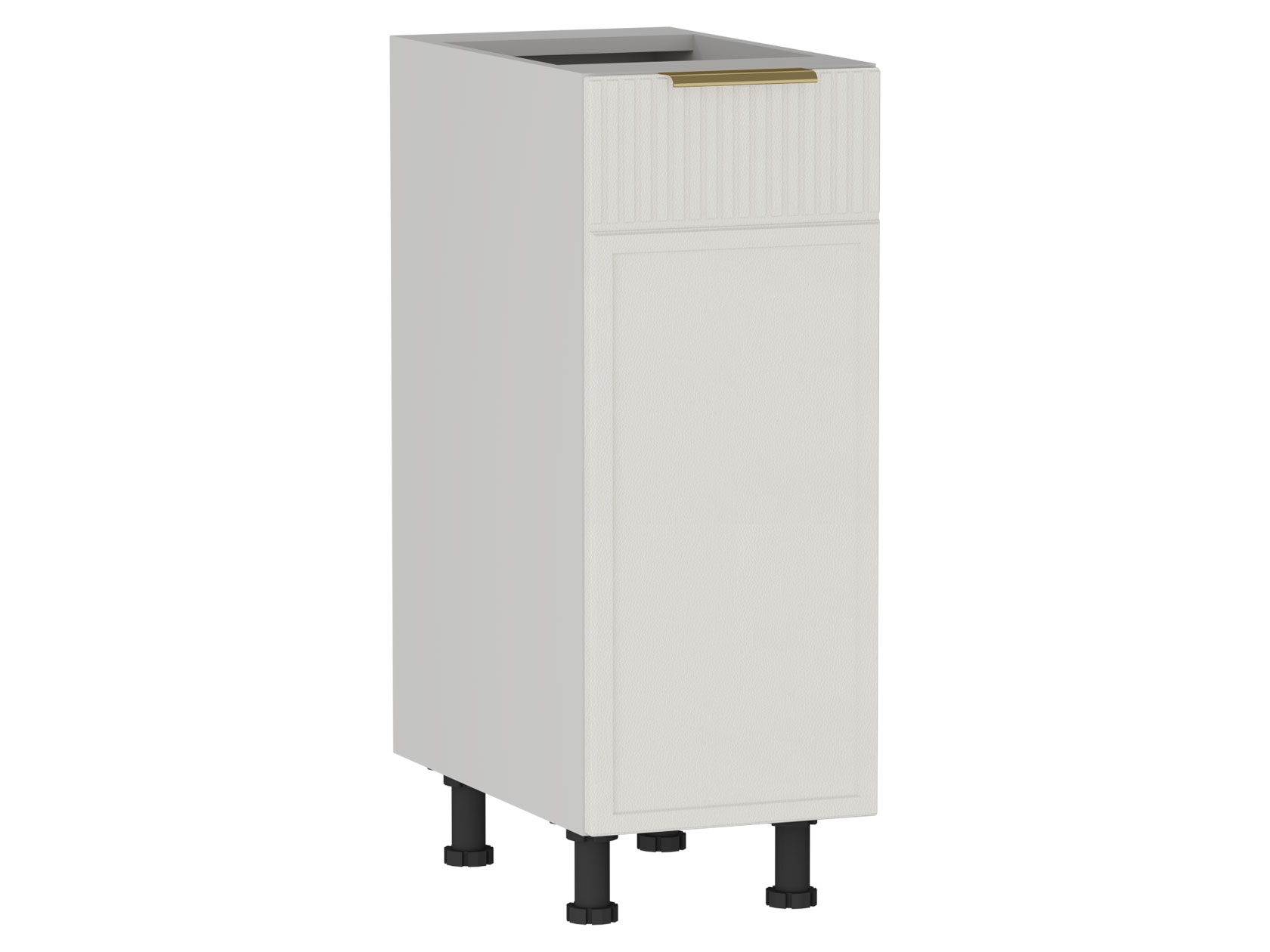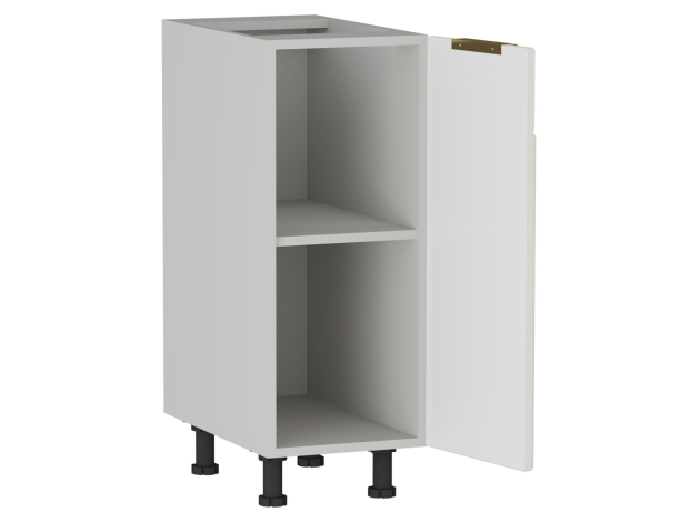 Стол Берта гармонично дополнит нижний ряд кухонного гарнитура. Отделение с полкой поможет разместить крупногабаритную посуду и другие принадлежности для готовки. Фасад с рамкой и вертикальной фрезеровкой дополнен матовой ручкой в золотом оттенке. Покрытие устойчиво к воздействию влаги, механическим повреждениям и ультрафиолету.
