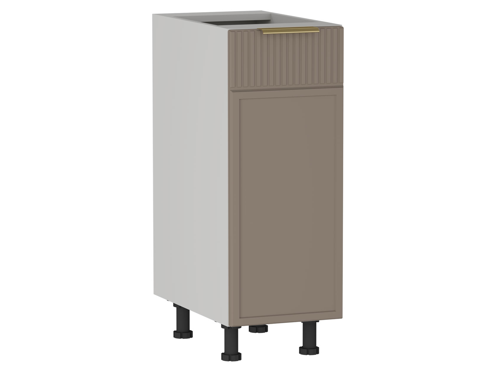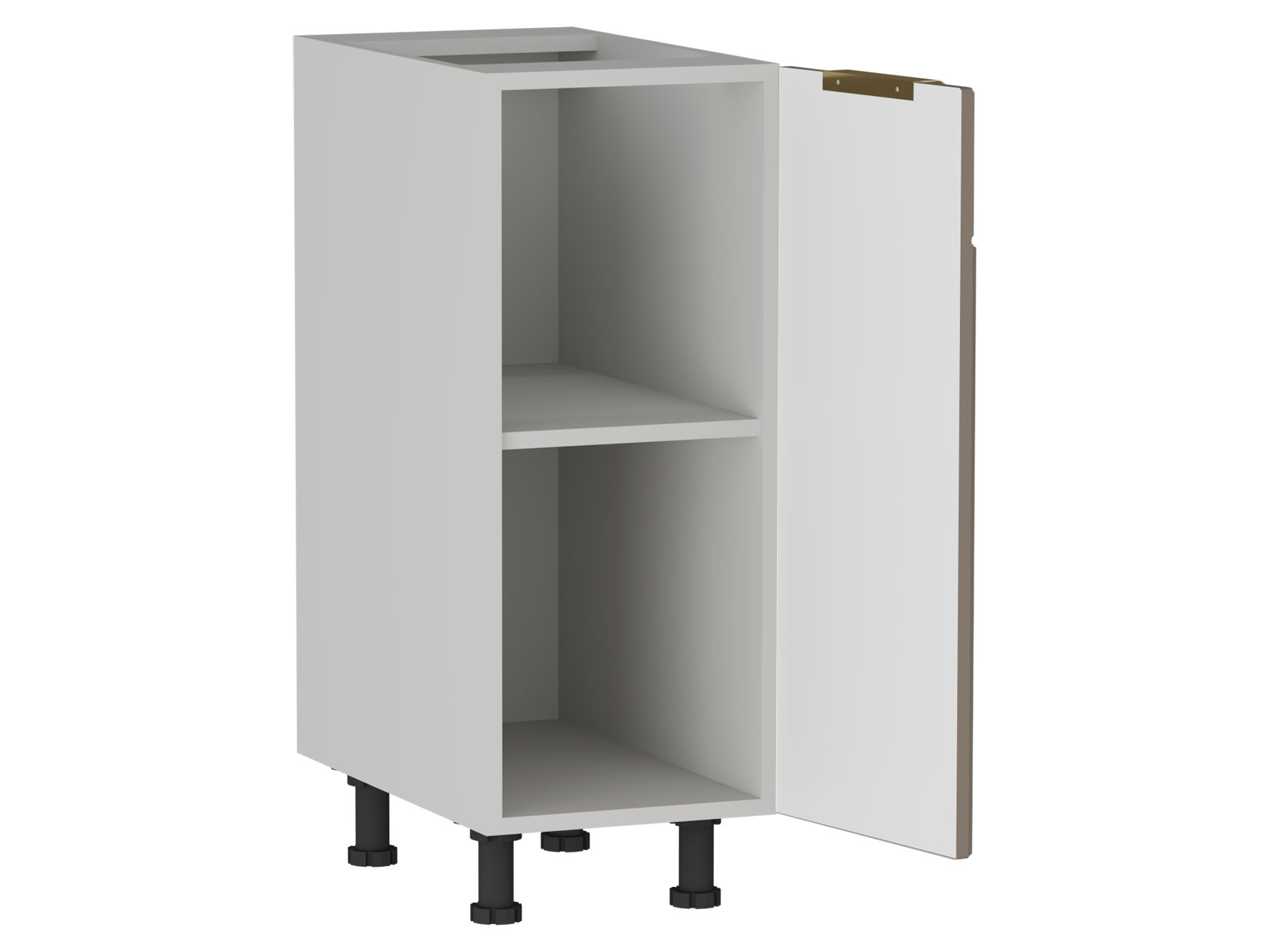 • Стол Берта гармонично дополнит нижний ряд кухонного гарнитура. Отделение с полкой поможет разместить крупногабаритную посуду и другие принадлежности для готовки. Фасад с рамкой и вертикальной фрезеровкой дополнен матовой ручкой в золотом оттенке. Покрытие устойчиво к воздействию влаги, механическим повреждениям и ультрафиолету.