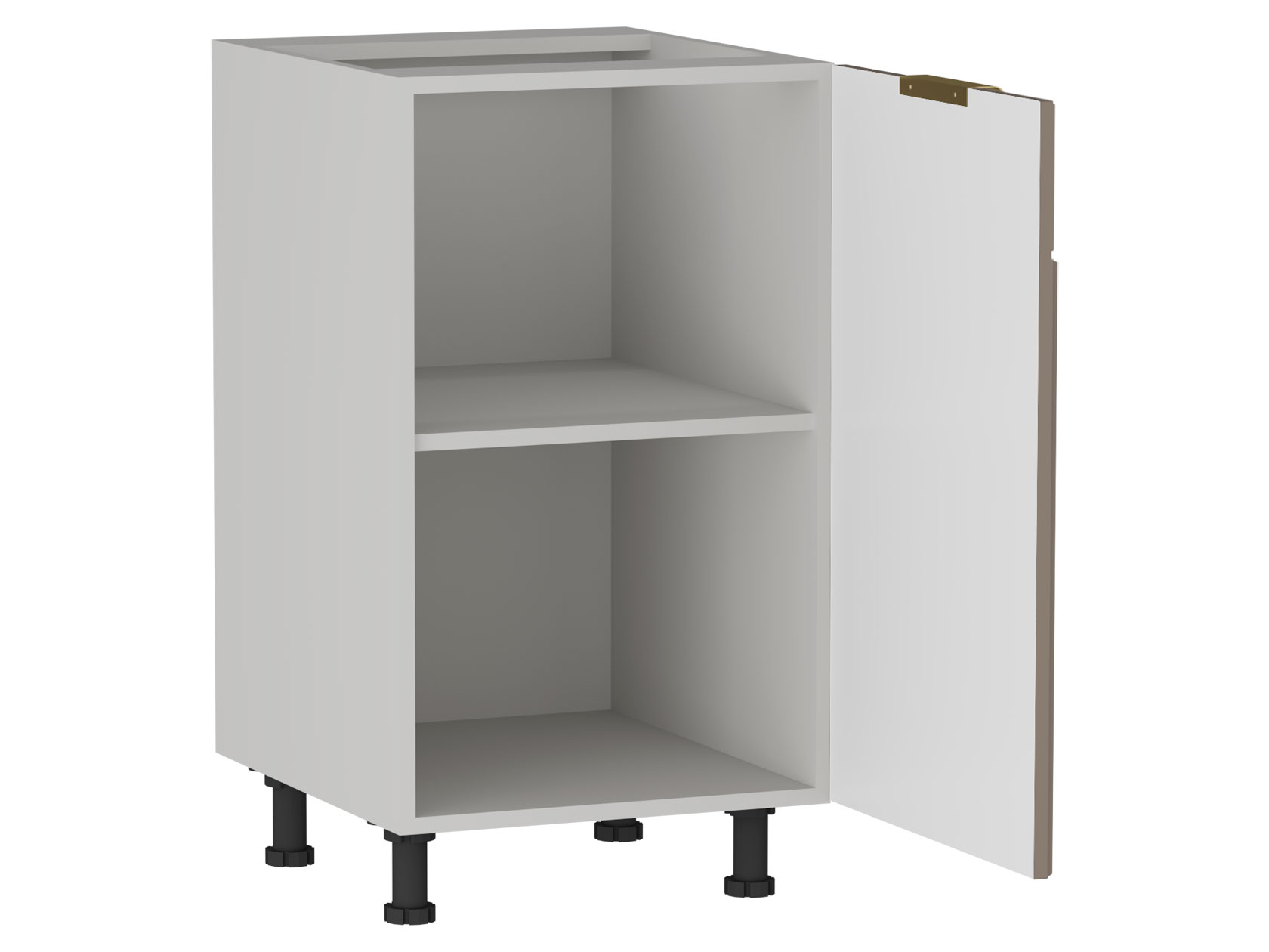 • Стол Берта гармонично дополнит нижний ряд кухонного гарнитура. Отделение с полкой поможет разместить крупногабаритную посуду и другие принадлежности для готовки. Фасад с рамкой и вертикальной фрезеровкой дополнен матовой ручкой в золотом оттенке. Покрытие устойчиво к воздействию влаги, механическим повреждениям и ультрафиолету.