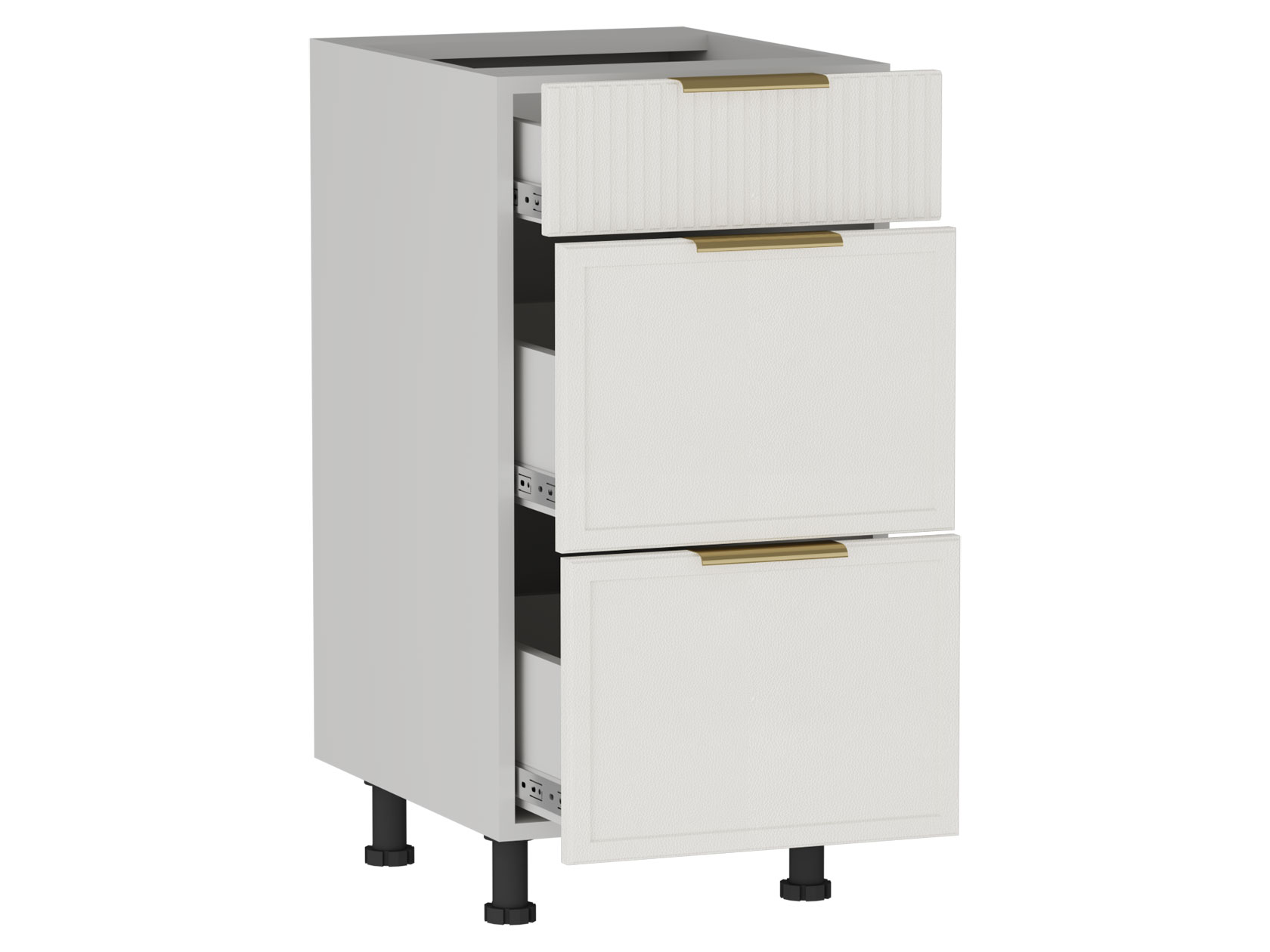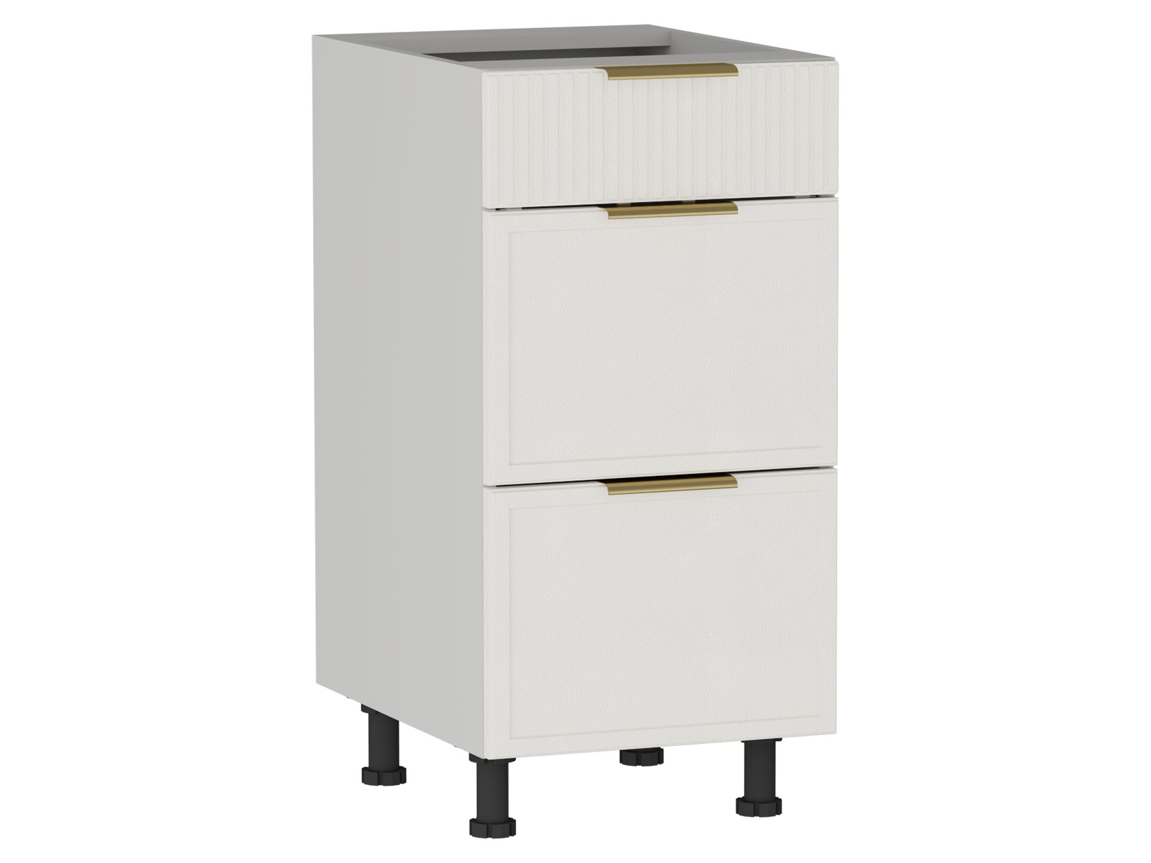 • Стол Берта 3 ящика поможет поддерживать порядок на кухне. Внутреннее наполнение предусматривает удобные выдвижные ящики для хранения столовых приборов и различной утвари. Матовые фасады с фрезеровкой в виде тонких рамок и вертикальных линий подчеркивают стильный облик модуля. Поверхность легко очищается от любых загрязнений, не портится от влаги и высокой температуры.