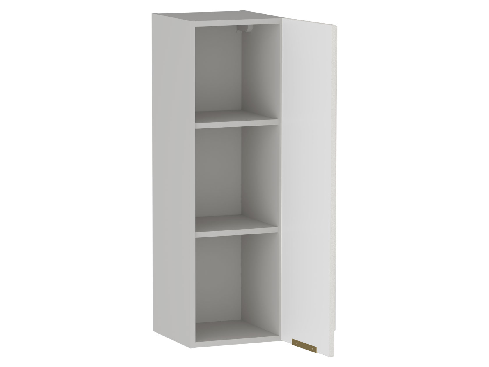 • Шкаф Берта станет функциональным дополнением верхнего ряда кухонного гарнитура и расширит систему хранения. На полках внутри удобно держать контейнеры со специями и сыпучими продуктами, а также посуду для особых случаев. Матовый фасад дополнен фрезеровкой и стильной ручкой в золотом оттенке, что создает интересные акценты интерьера.