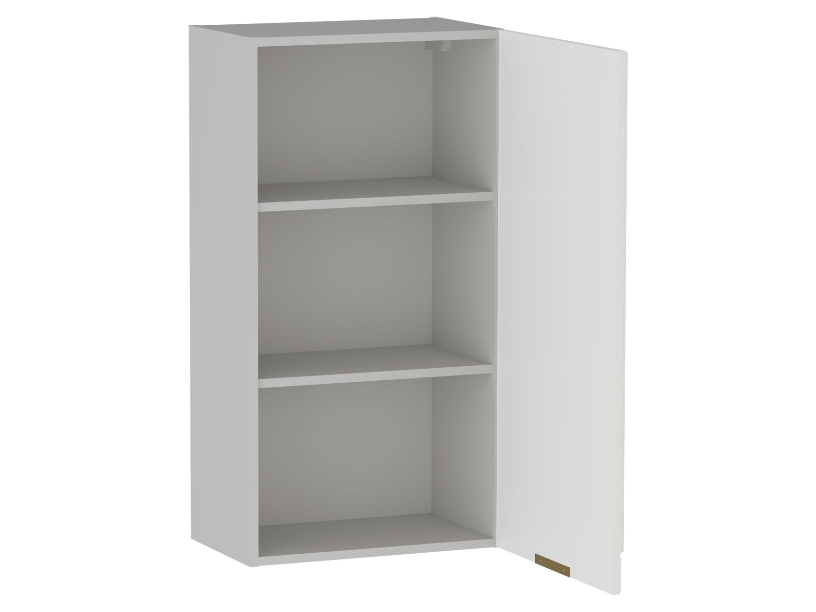 • Шкаф Берта станет функциональным дополнением верхнего ряда кухонного гарнитура и расширит систему хранения. На полках внутри удобно держать контейнеры со специями и сыпучими продуктами, а также посуду для особых случаев. Матовый фасад дополнен фрезеровкой и стильной ручкой в золотом оттенке, что создает интересные акценты интерьера.