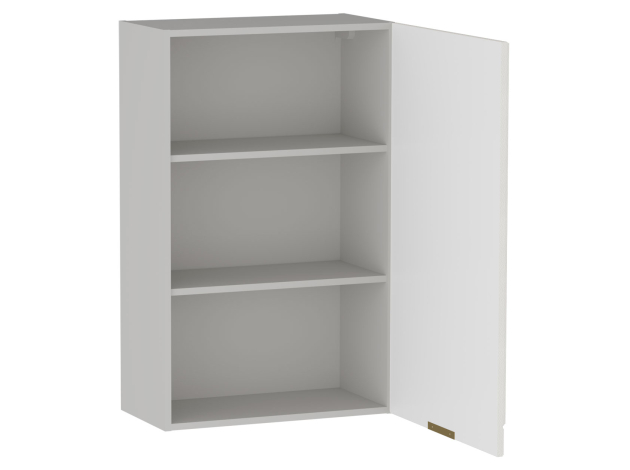 • Шкаф Берта станет функциональным дополнением верхнего ряда кухонного гарнитура и расширит систему хранения. На полках внутри удобно держать контейнеры со специями и сыпучими продуктами, а также посуду для особых случаев. Матовый фасад дополнен фрезеровкой и стильной ручкой в золотом оттенке, что создает интересные акценты интерьера.