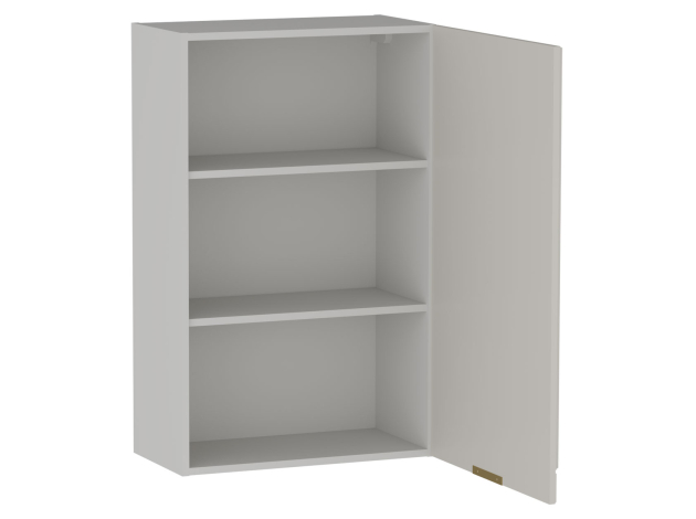 • Шкаф Берта станет функциональным дополнением верхнего ряда кухонного гарнитура и расширит систему хранения. На полках внутри удобно держать контейнеры со специями и сыпучими продуктами, а также посуду для особых случаев. Матовый фасад дополнен фрезеровкой и стильной ручкой в золотом оттенке, что создает интересные акценты интерьера.