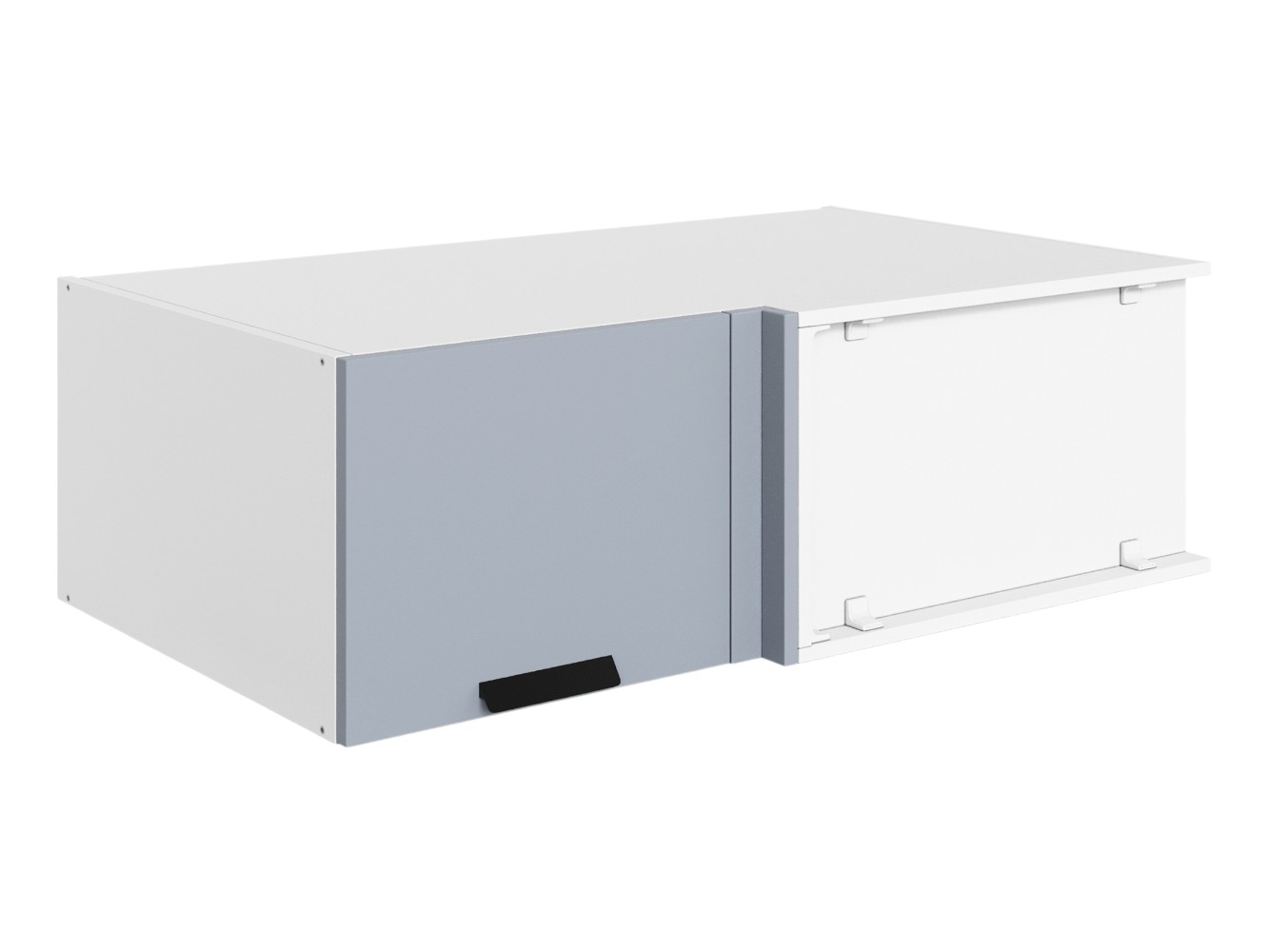 Прямоугловой антресольный шкаф Джаз дополнит верхний ряд кухонного гарнитура и создаст дополнительное место для хранения запаса сыпучих продуктов и различной посуды. Откидная дверца оснащена газовым амортизатором, который фиксирует поднятый фасад так, чтобы не приходилось удерживать его самостоятельно.