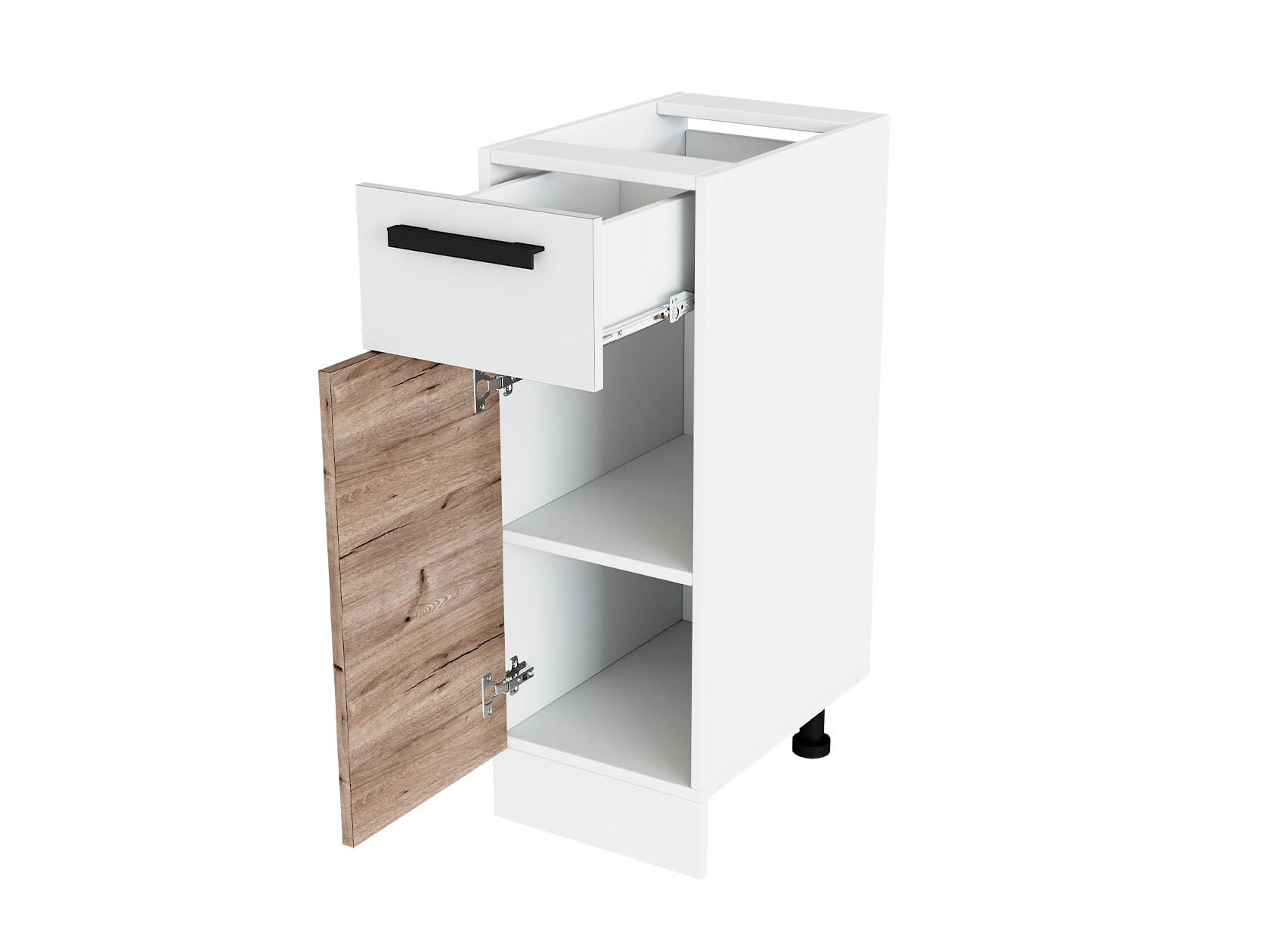 Стол Эра оптимален для хранения самой разной кухонной утвари. Гладкие матовые фасады устойчивы к воздействию влаги и мелким повреждениям. Цоколь защищает от попадания мусора, а регулируемые ножки обеспечивают устойчивость мебели на любой поверхности.
