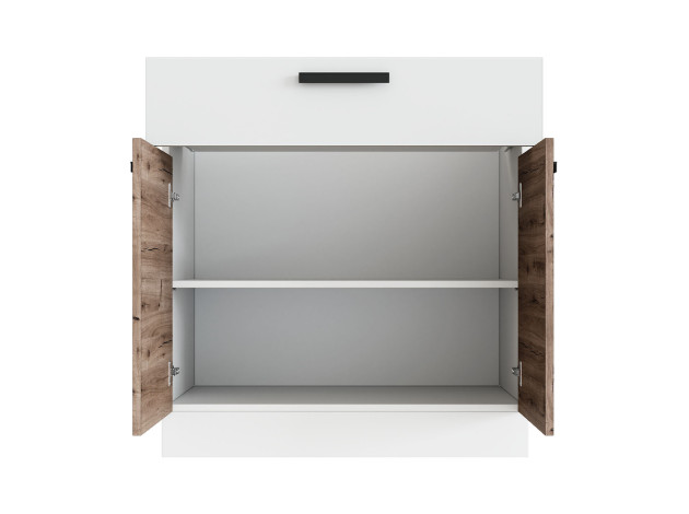 Стол Эра оптимален для хранения самой разной кухонной утвари. Гладкие матовые фасады устойчивы к воздействию влаги и мелким повреждениям. Цоколь защищает от попадания мусора, а регулируемые ножки обеспечивают устойчивость мебели на любой поверхности.