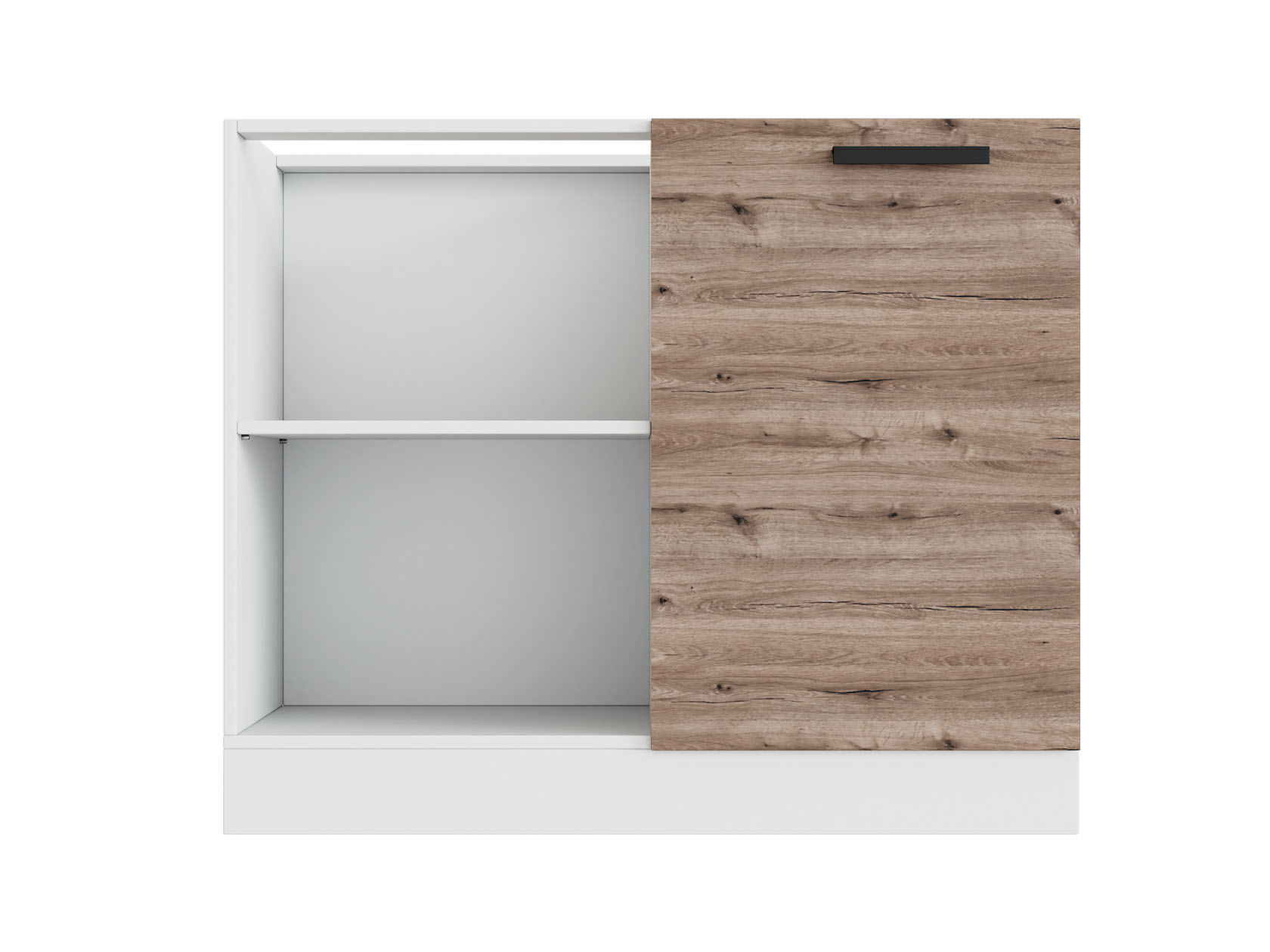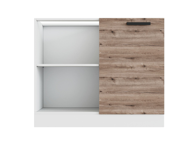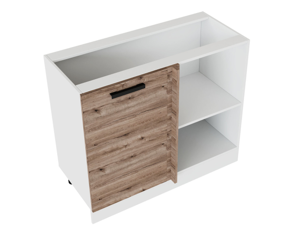Прямоугловой стол Эра — практичное дополнение кухонного гарнитура. За дверцей расположена глубокая ниша с полкой для посуды и запасов продуктов. Матовый фасад под дерево устойчив к ультрафиолету, появлению царапин и сколов. Цоколь защищает основание мебели от механических воздействий и попадания мусора.