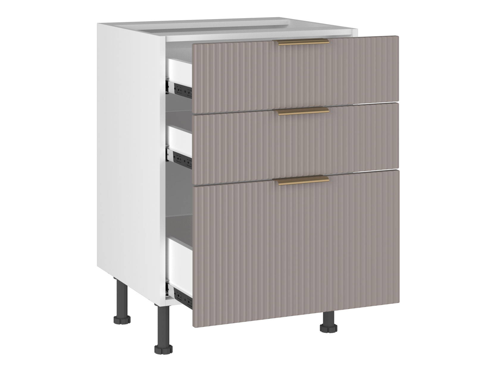 • Стол Фьюжн станет продолжением нижней части кухонного гарнитура и оптимизирует систему хранения. В выдвижных ящиках можно разместить столовые приборы, аксессуары, контейнеры и небольшую посуду. Модуль оснащен регулируемыми ножками, которые обеспечивают устойчивость и компенсируют неровности напольного покрытия.
