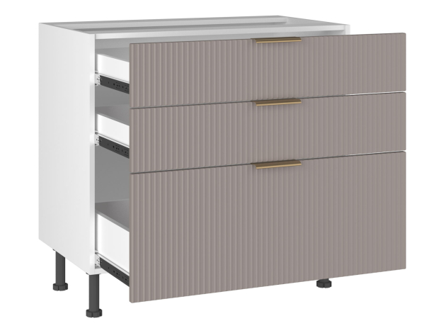 • Стол Фьюжн станет продолжением нижней части кухонного гарнитура и оптимизирует систему хранения. В выдвижных ящиках можно разместить столовые приборы, аксессуары, контейнеры и небольшую посуду. Модуль оснащен регулируемыми ножками, которые обеспечивают устойчивость и компенсируют неровности напольного покрытия.