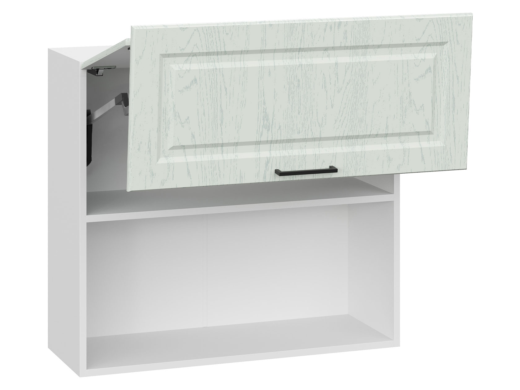 • Барный шкаф Грейвуд поможет аккуратно расположить бокалы, посуду для сервировки и емкости с сыпучими продуктами. Дверцы легко складываются при открывании и надежно фиксируются в поднятом положении благодаря специальному механизму. Фасады с текстурой дерева и рамочной фрезеровкой придают модулю изысканный вид.