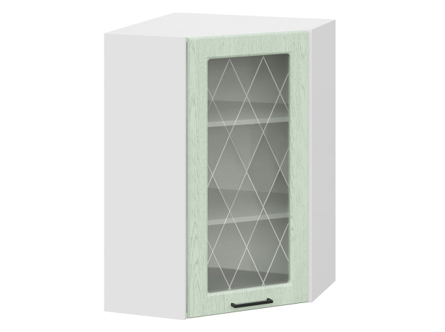 Навесной шкаф угловой Грейвуд Белый / Шато мята со стеклом 60 см