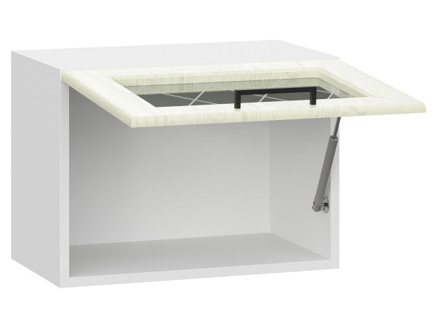 Шкаф Грейвуд — стильное решение для хранения на кухне. Прозрачное стекло позволяет увидеть содержимое, не открывая дверцу, а также делает модуль визуально легче. Изящная металлическая ручка — элегантный штрих в оформлении фасада.