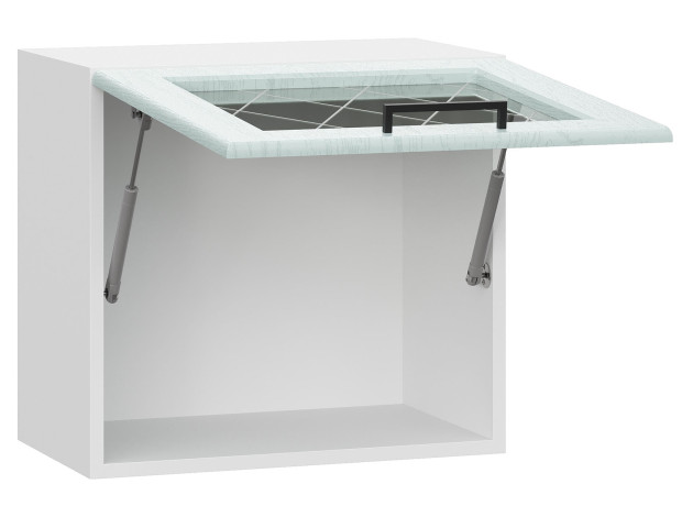 Шкаф Грейвуд — стильное решение для хранения на кухне. Прозрачное стекло позволяет увидеть содержимое, не открывая дверцу, а также делает модуль визуально легче. Изящная металлическая ручка — элегантный штрих в оформлении фасада.
