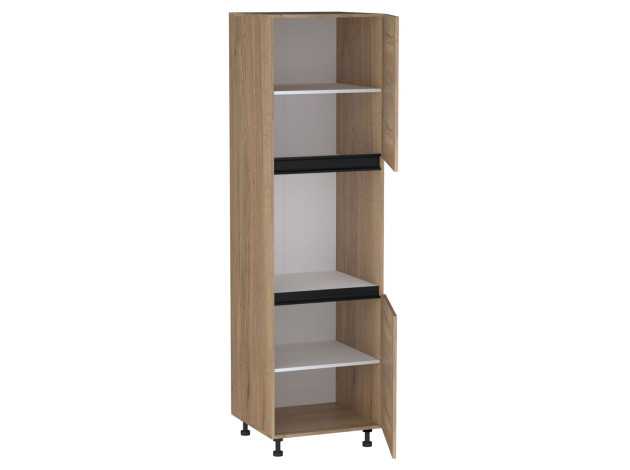 Пенал под встраиваемую технику Сити будет органично смотреться в интерьере в стиле лофт. Отделения с полками за распашными дверцами расширят систему хранения. Цоколь защитит от попадания мусора и мелких предметов под мебель. Открытая ниша может быть дополнена еще одной полкой и распашной дверцей.