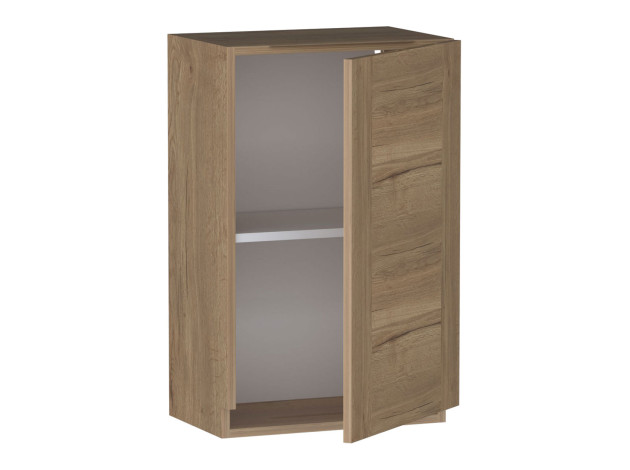 Навесной шкаф Сити расширит систему хранения и будет гармонично смотреться в интерьере в стиле лофт. Внутреннее наполнение представлено двумя равными по размеру ячейками для продуктов и хозяйственных принадлежностей. Глухая дверца без внешней фурнитуры открывается за край фасада.