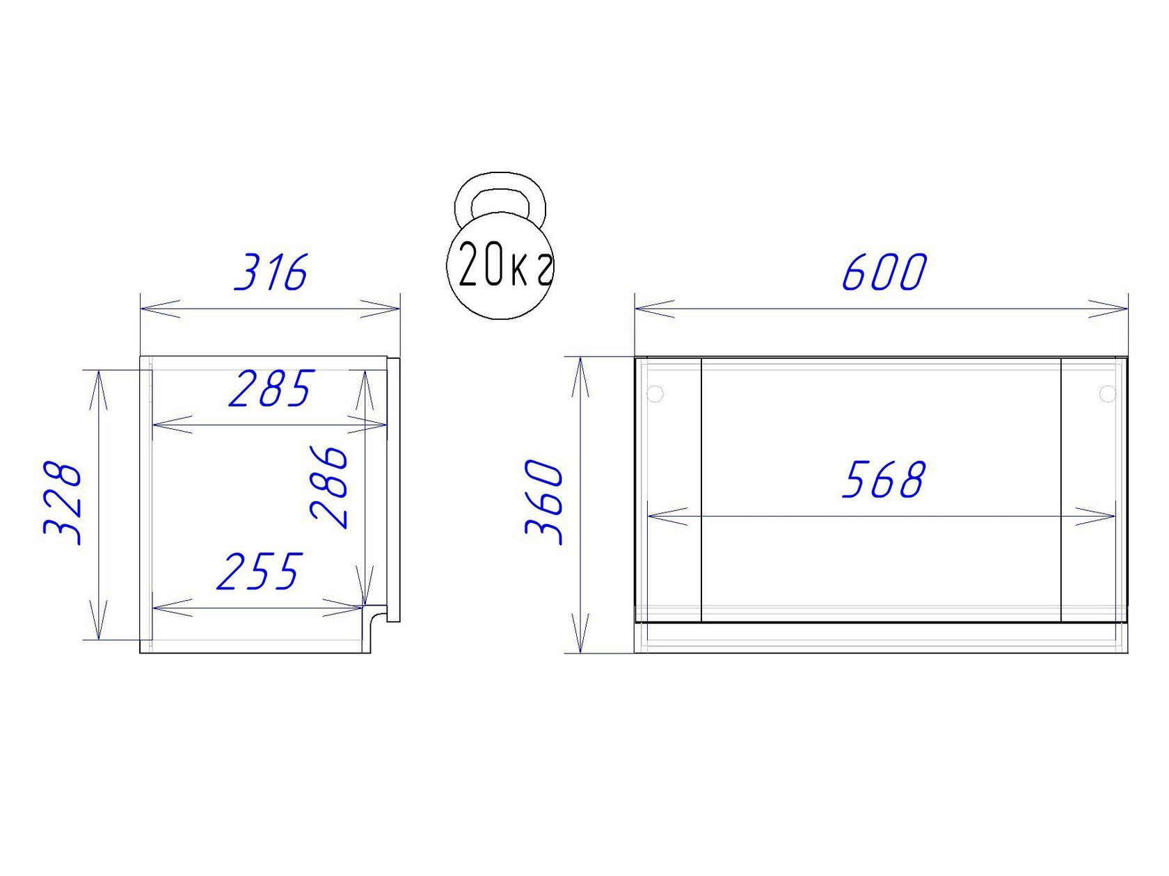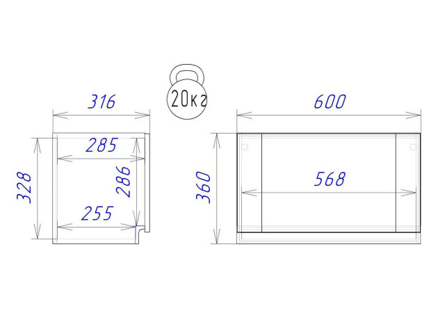 - Максимальная нагрузка на полку: 20 кг.