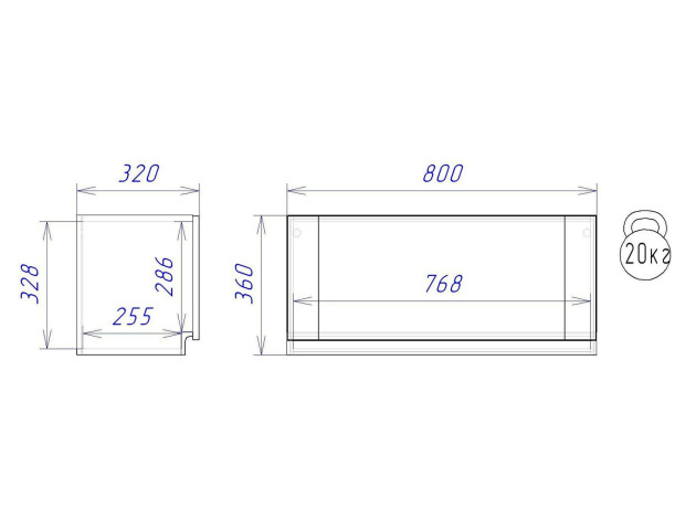 - Максимальная нагрузка на полку: 20 кг.