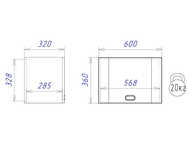 - Максимальная нагрузка на полку: 20 кг.
