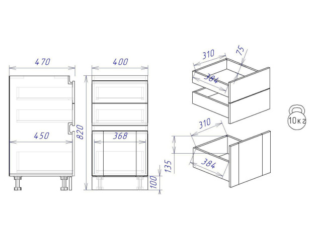 - Максимальная нагрузка на ящик: 10 кг.